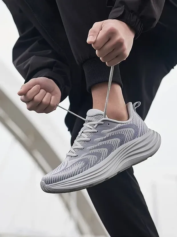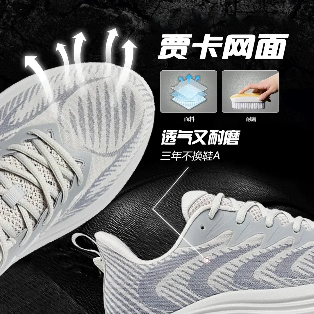 这双鞋直接用 “会呼吸” 的设计全解决了!鞋面是双层贾卡面料,布满镂空透气网纹,上脚就有清风 “噗呲” 往里钻。