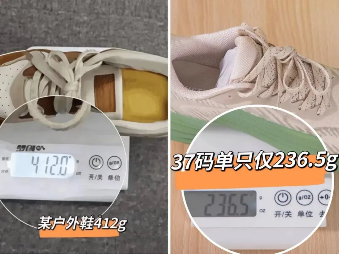最惊喜的是“厚底不重”:37码单只仅236.5g,比普通跑鞋还轻,扔水里能稳稳浮着。