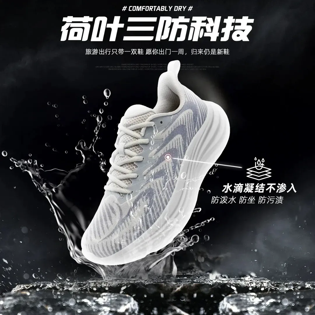 别以为柔软鞋面就不耐造!鞋面直接采用荷叶三防黑科技,夏天雨水多,穿它可太省心了~
