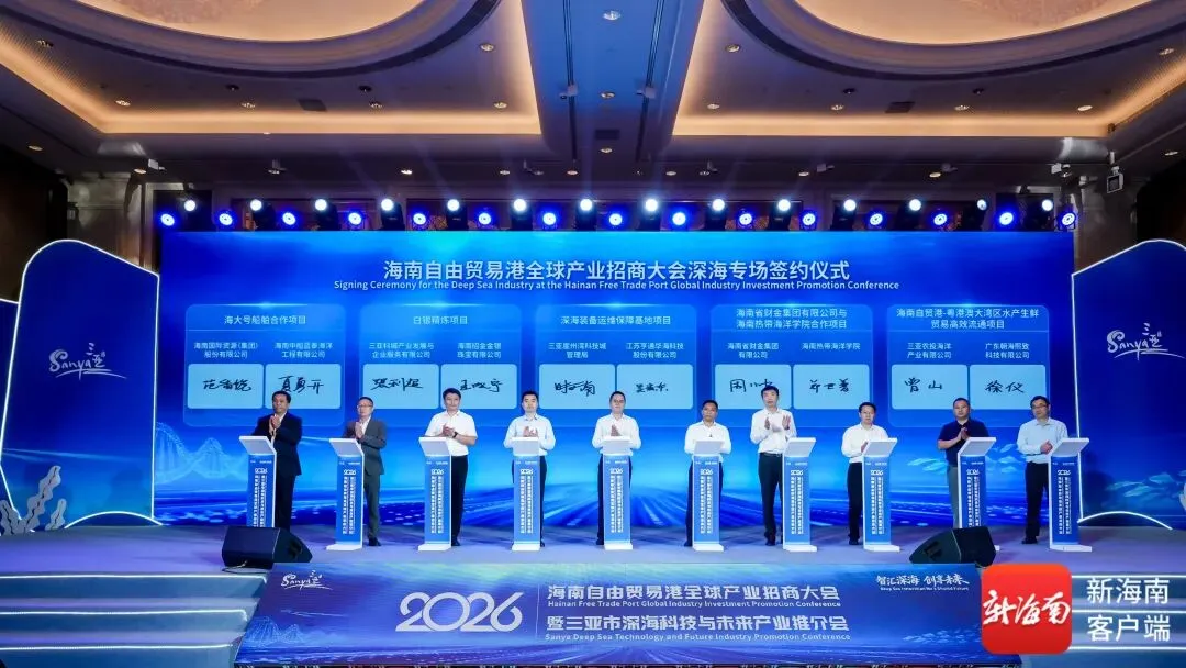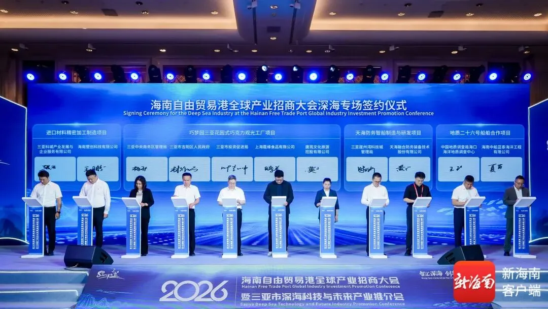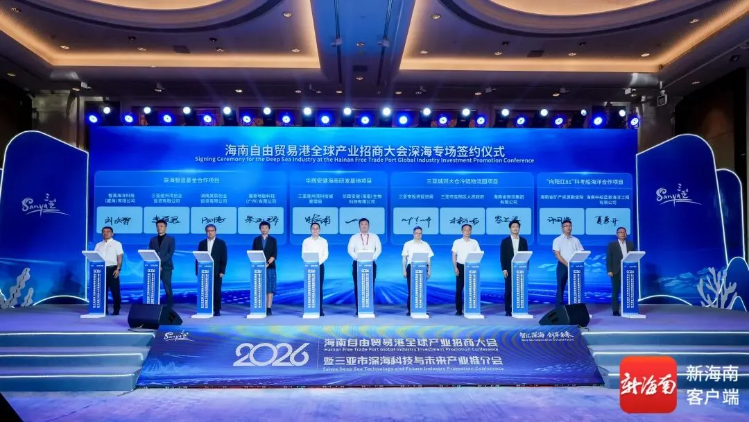 4月14日,2026年海南自由贸易港全球产业招商大会暨三亚市深海科技与未来产业推介会在海口举办,现场汇聚百余位行业专家、龙头企业负责人、金融机构代表及国际商协会嘉宾,共话深海产业发展新趋势,共研技术创新融合新路径,共绘自贸港海洋经济高质量发展新蓝图。