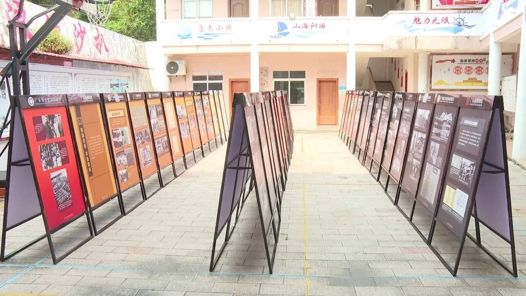 活动现场,一幅幅图文并茂的展板整齐陈列,吸引了不少群众驻足观看。本次展览主题为“旗展华南 砥柱中流——华南人民抗战历史专题展”,通过大量珍贵历史图片,生动再现了抗日战争时期,华南儿女在中国共产党的领导下浴血奋战、铸就华南战场砥柱中流的壮阔历程。该活动以“轻骑兵”式的灵活形式,让原本“藏在深闺”的省级文博资源走进乡镇,让阳西县群众在家门口就能沉浸式感受历史文化魅力。