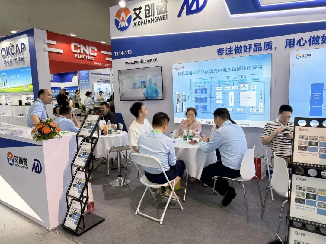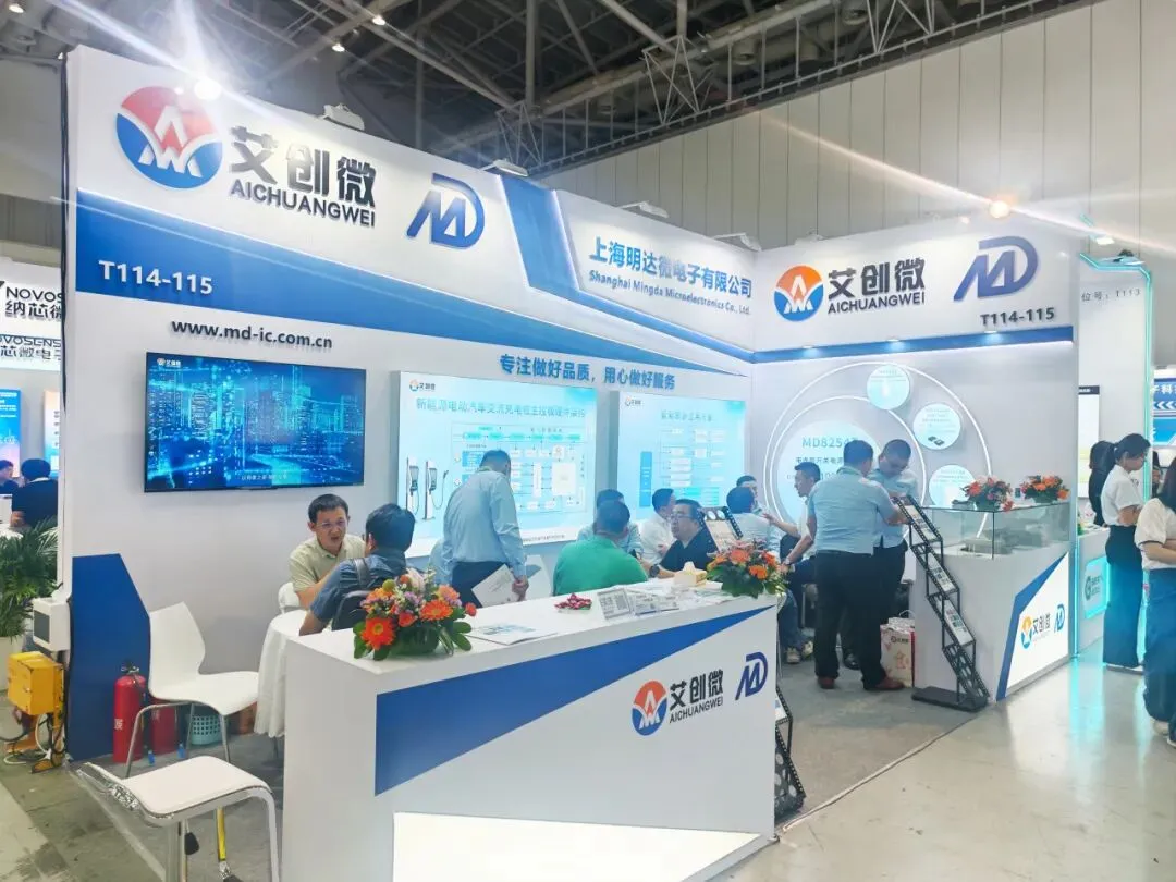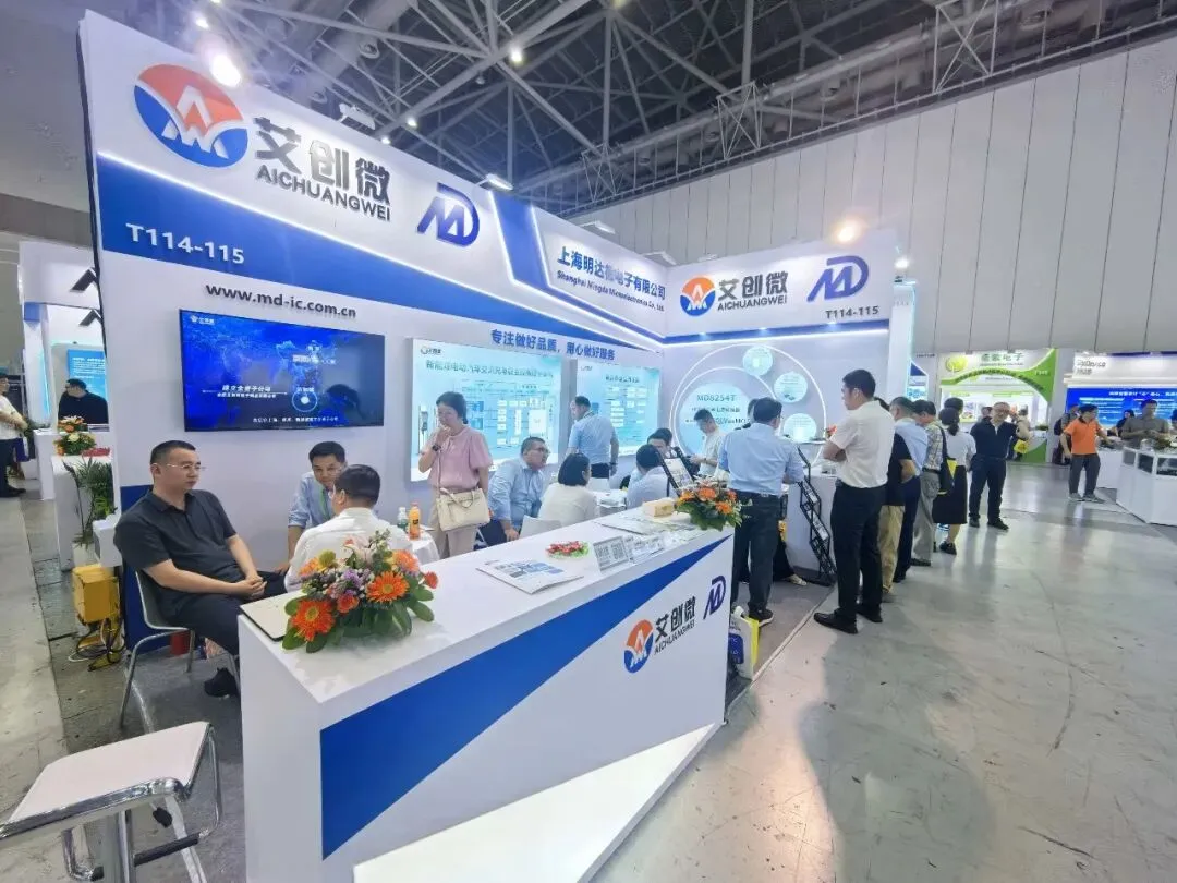 展会现场人潮涌动,盛况空前。艾创微及明达微展位重点展示了公司最新研发的磁保持继电器驱动芯片、碳化硅、DC-DC电源管理芯片等“硬核”产品,凭借其出色的高可靠性、低功耗、强驱动能力,吸引了众多专业客户与行业专家的驻足与技术洽谈。