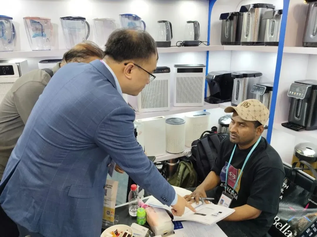 首次拿到广交会“入场券”的台山松川电器科技有限公司,深耕小家电领域三十余载,产品涵盖液体加热器、破壁机、净水器等十余种健康小家电。开展首日,企业展位便迎来“开门红”。“从上午10时开始,人流量明显增加,我们对接了不少新客商,大多数来自英国、俄罗斯、荷兰、乌克兰、乌兹别克斯坦及非洲等地。”该公司副董事长伍超明介绍,企业带来的新款智能电热开水瓶、空气净化器备受关注,已与客户约定后续寄送样品、提供报价,进一步深入对接。