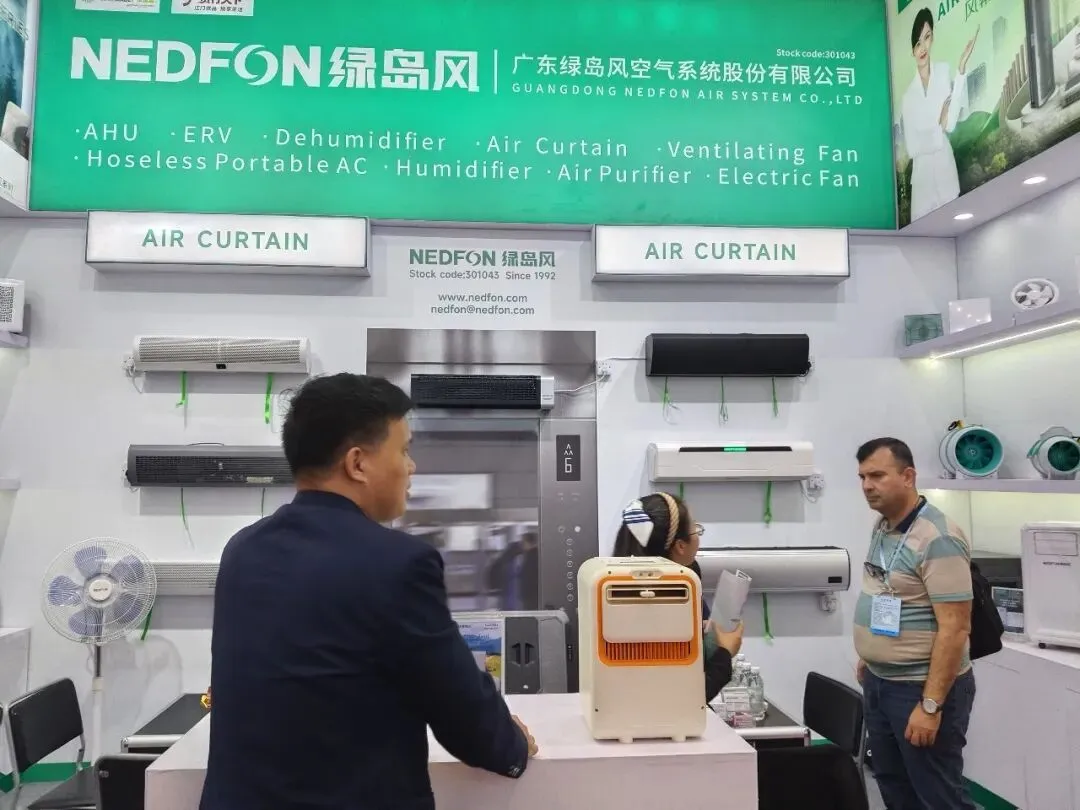 广东绿岛风空气系统股份有限公司在展位上重点推介了全新产品——帐篷空调。该产品可连接帐篷使用,精准契合国外喜爱户外活动的需求,一亮相便吸引众多采购商驻足咨询。