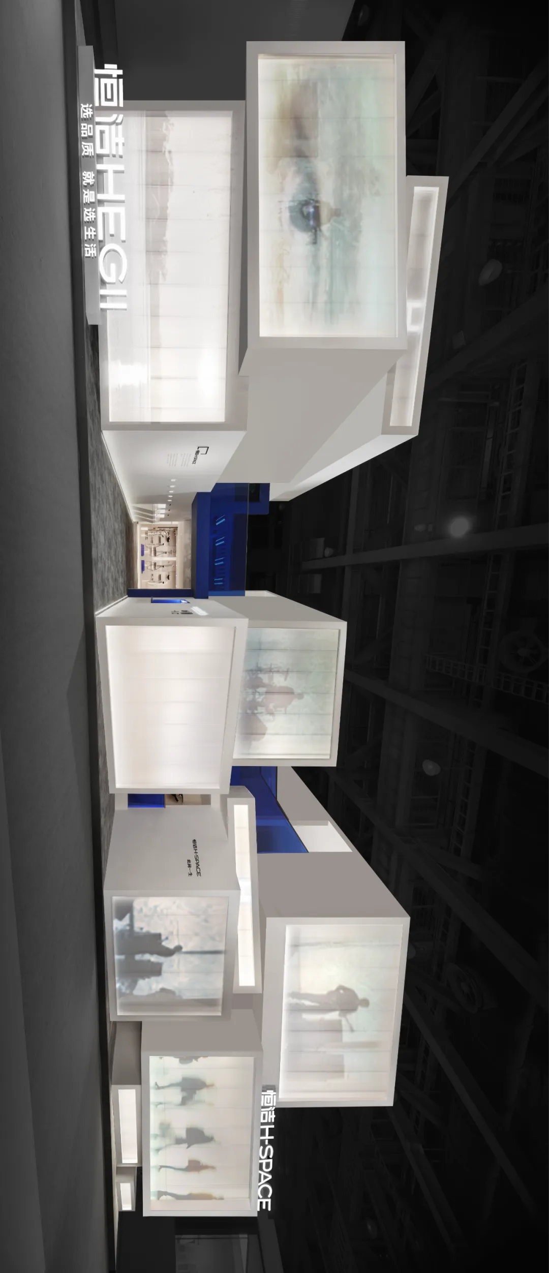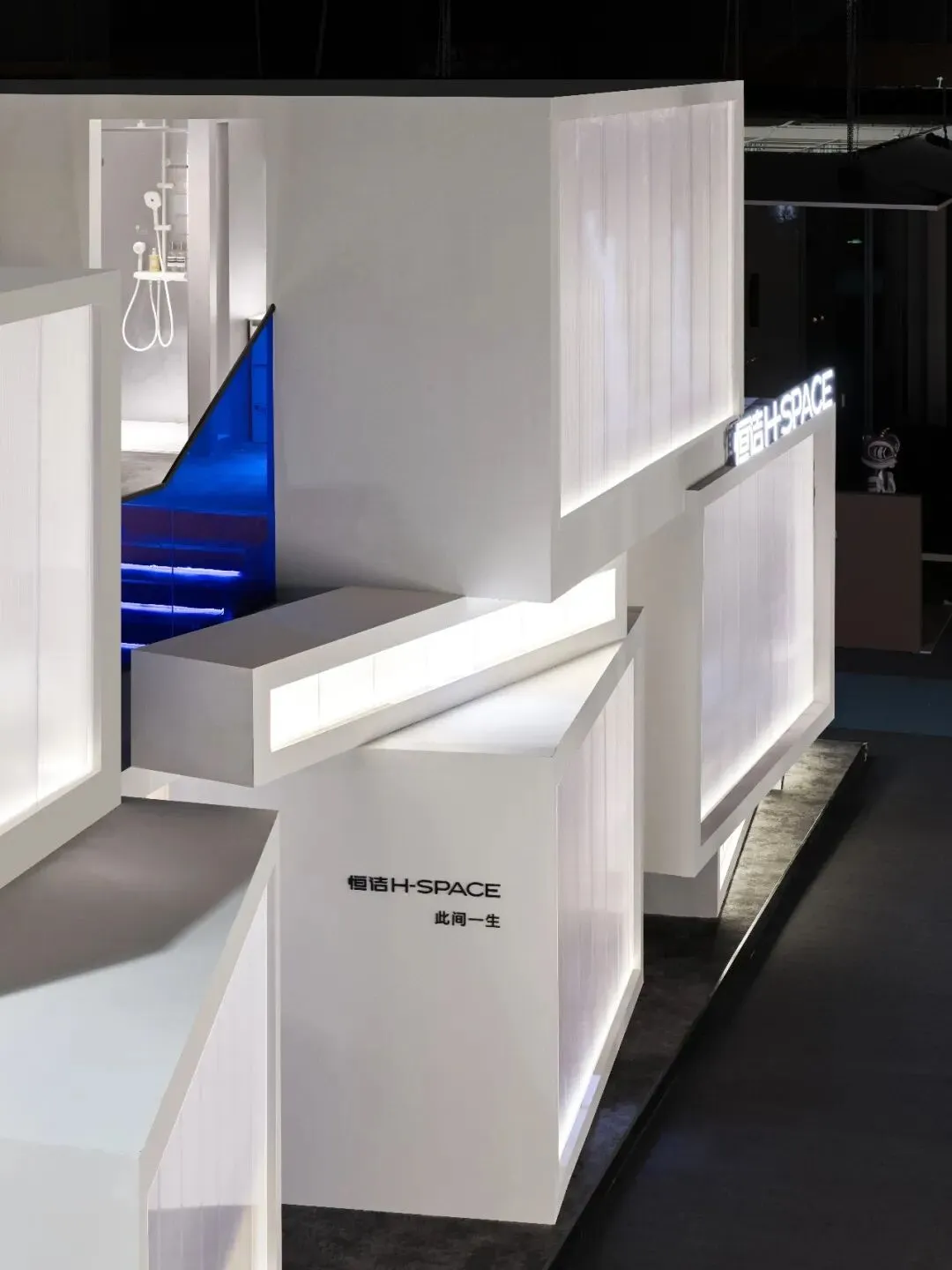 微白的基调如同未开启的幕布,一抹标志性的“恒洁蓝”跃然其上,形成强烈的视觉牵引。