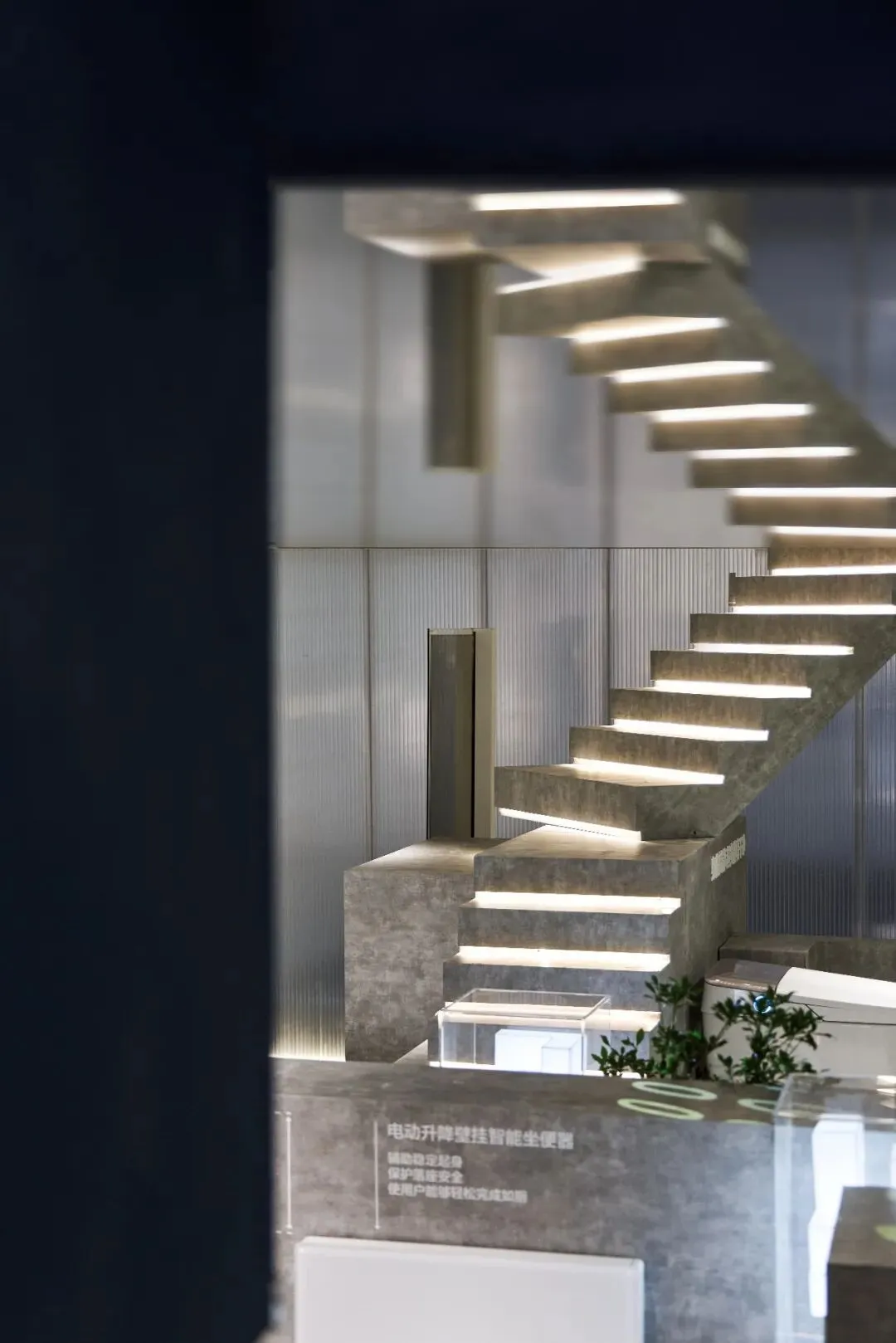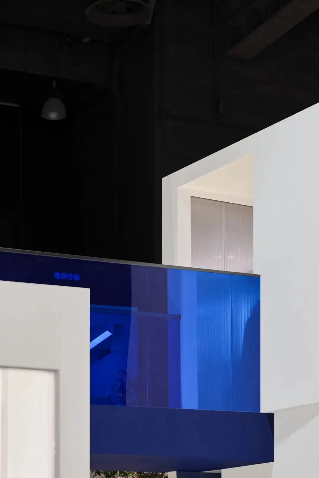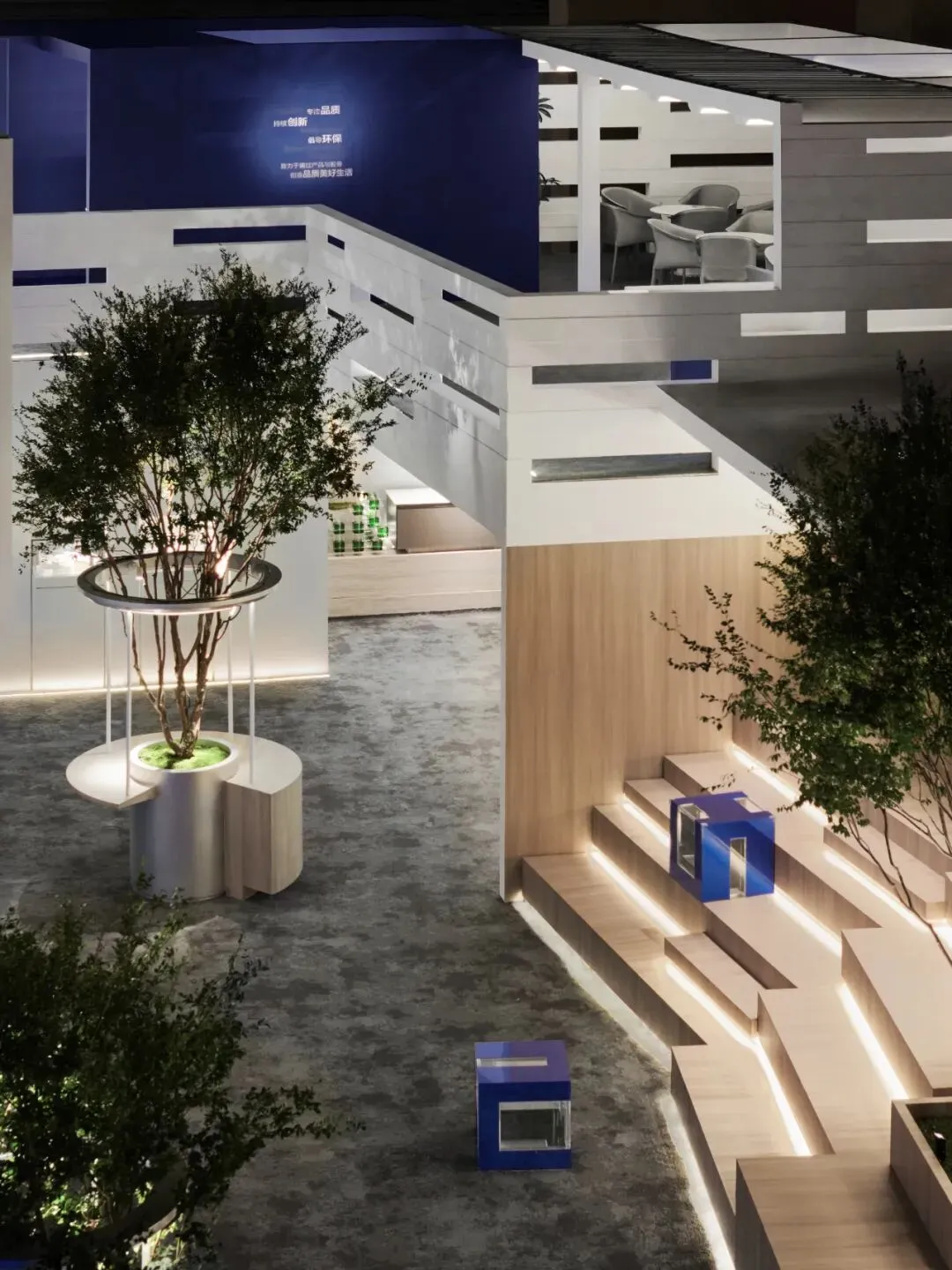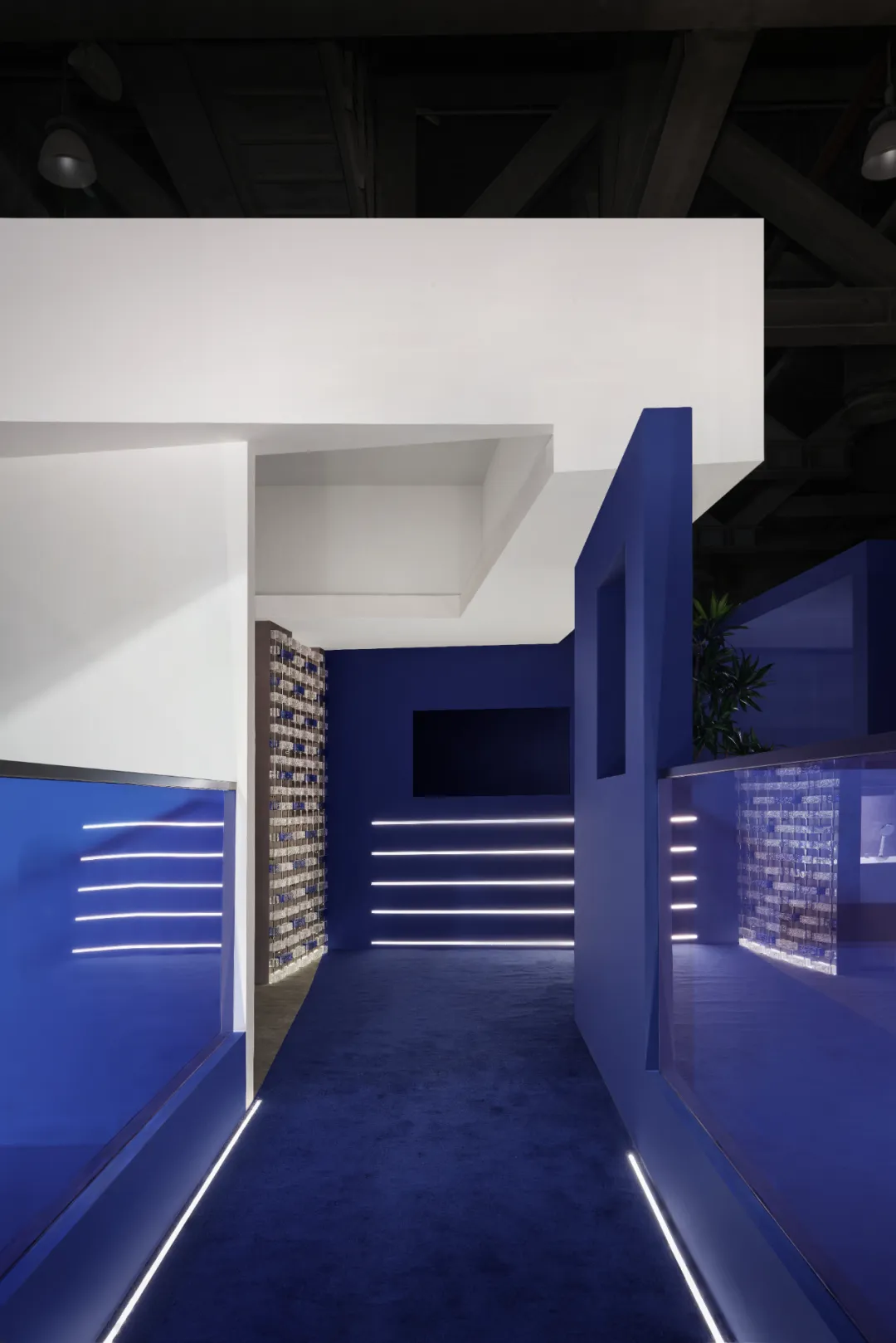 楼梯延续“恒洁蓝”引导线,如一段视觉旋律,串联叙事,也预示二楼更广阔的探索。