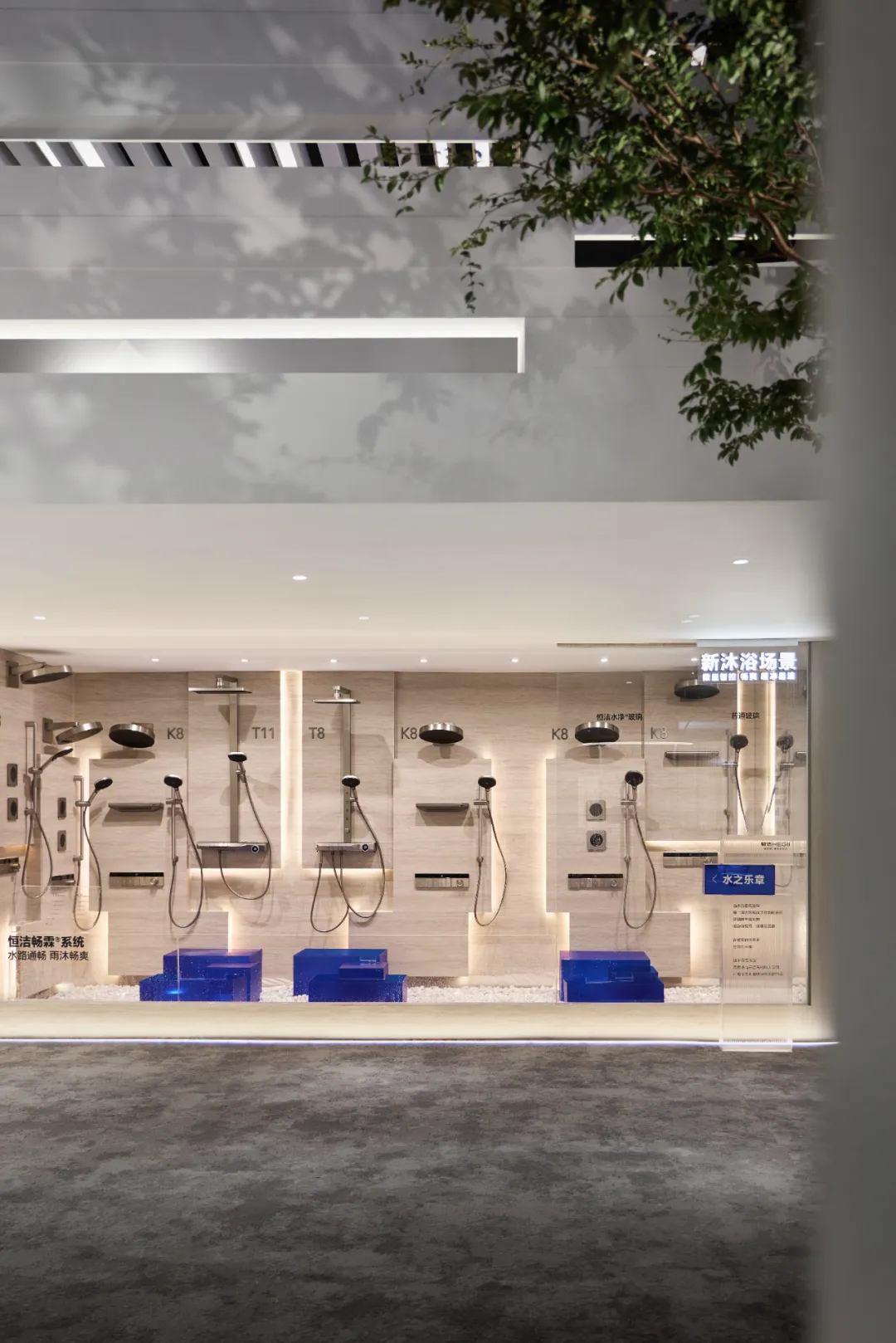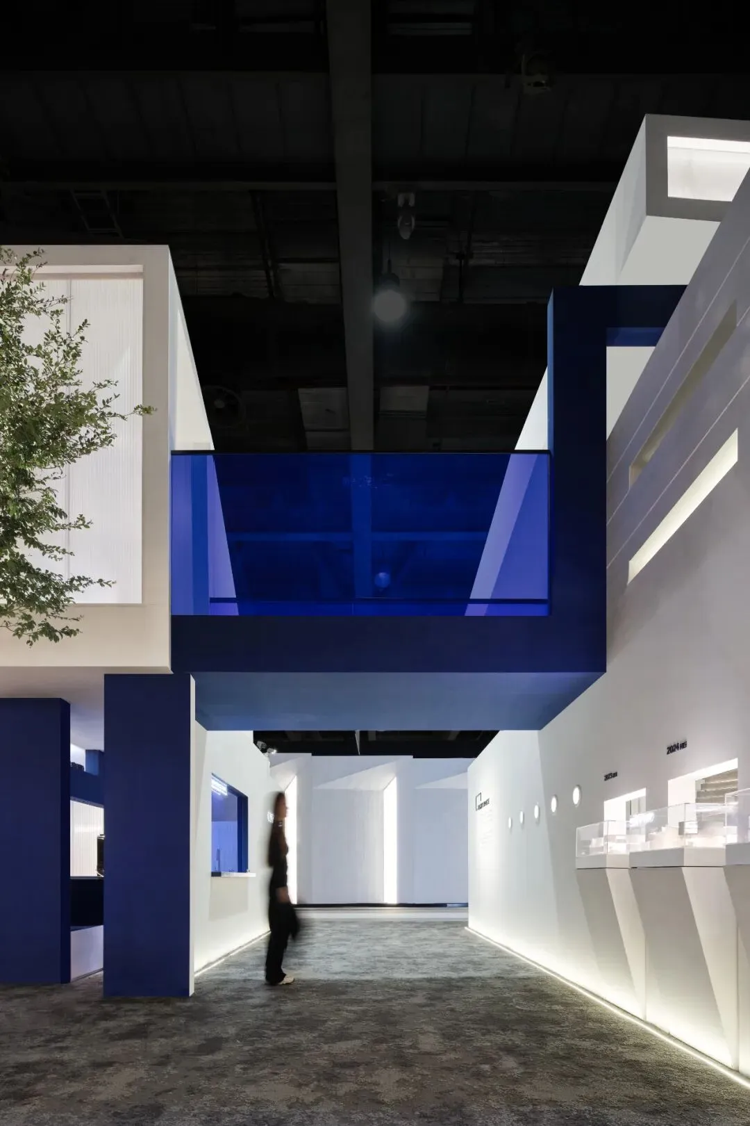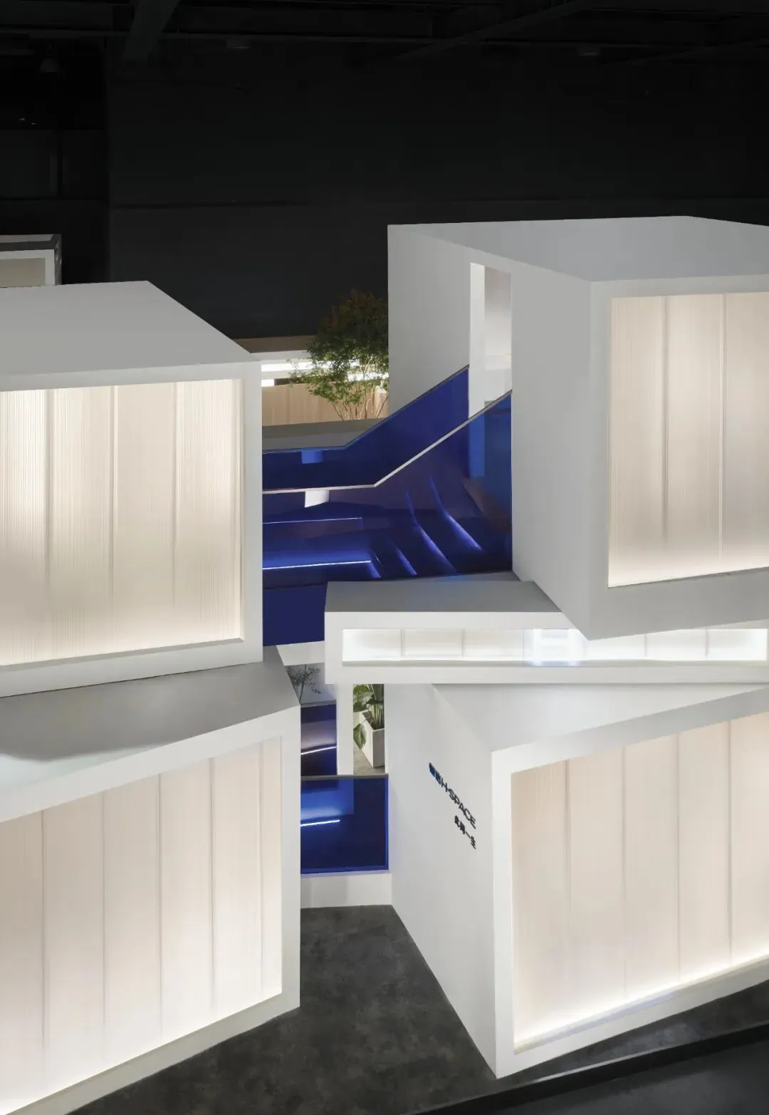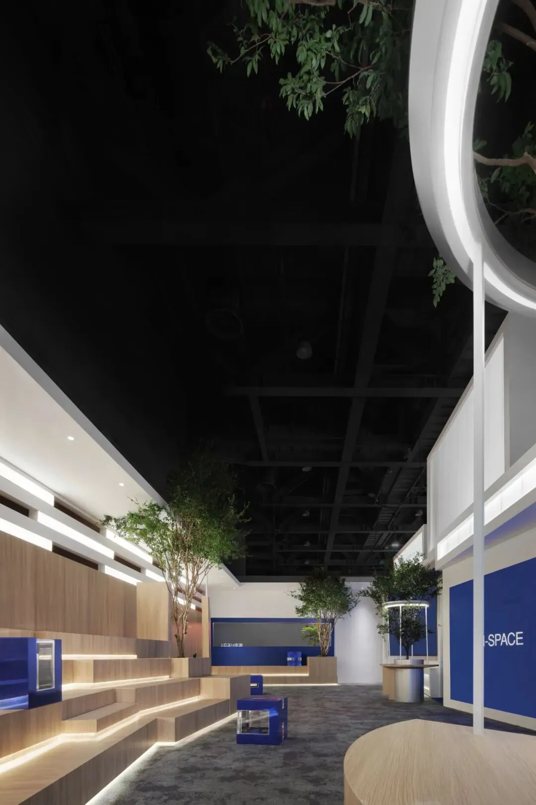 楼梯延续“恒洁蓝”引导线,如一段视觉旋律,串联叙事,也预示二楼更广阔的探索。