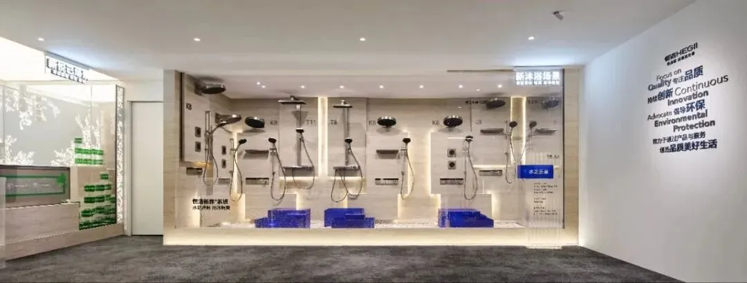 以西藏波密冰川为灵感,阶梯式布局构建冰塔林般的视觉动线。冰蓝氛围中,恒洁Q、R、N系列产品如群峰矗立,展现节水、净污与智能科技的阶梯式突破。