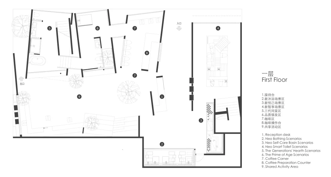 我们以“戏剧”为设计线索,提炼出 「人生如戏」 策展概念。将空间转化为五幕人生剧场,通过空间、材质、光影与艺术装置,具象化地演绎不同人生阶段的卫浴需求、情感共鸣与生活美学。
