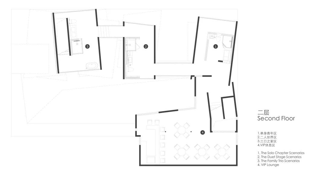 空间将人生划分为五个典型阶段:单身的探索青年、甜蜜的二人世界、温馨的三口之家、成熟的三代同堂、以及从容的品质银发。