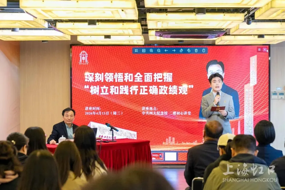 活动还设置了主题讲座环节,邀请中共上海市委党史研究室特约研究员、陈云纪念馆原党委书记、馆长吴瑞虎作《深刻领悟和全面把握“树立和践行正确政绩观”》专题报告。报告从重要性、核心要义、偏差危害及实干担当四个方面展开,帮助现场观众深化对正确政绩观的认识。