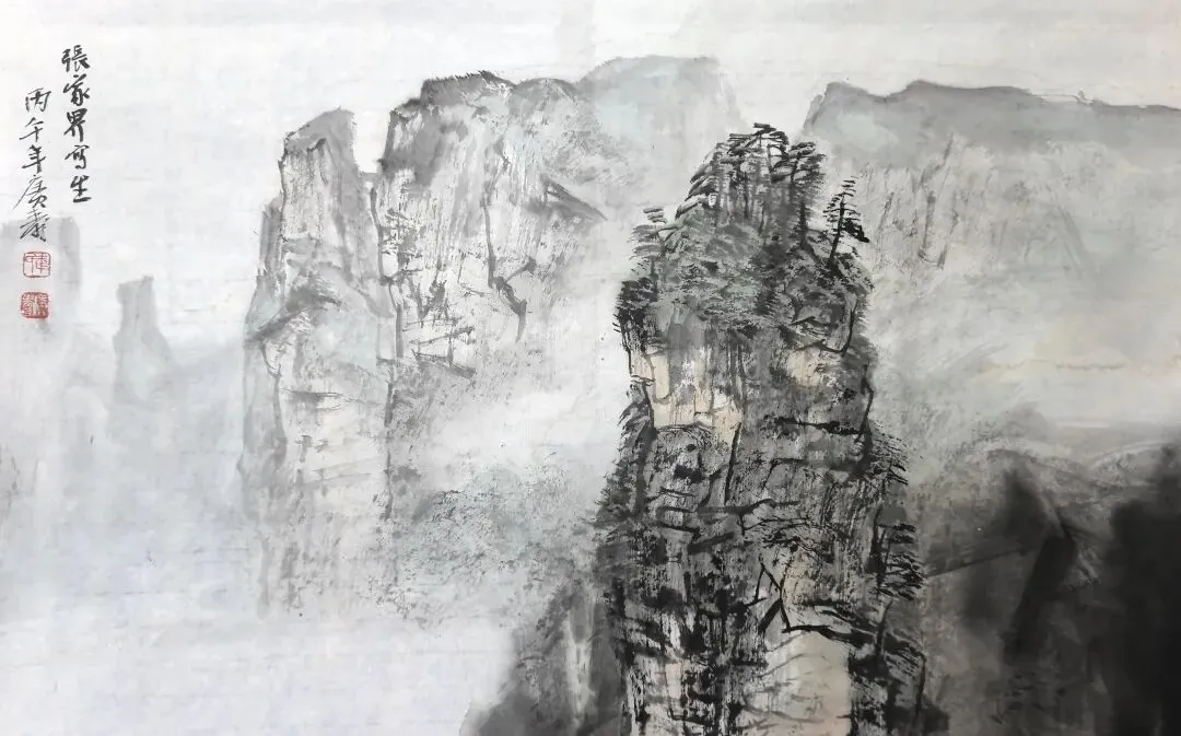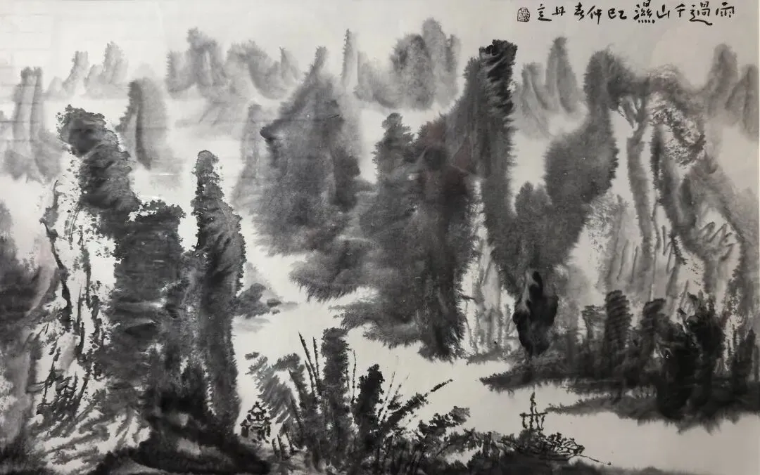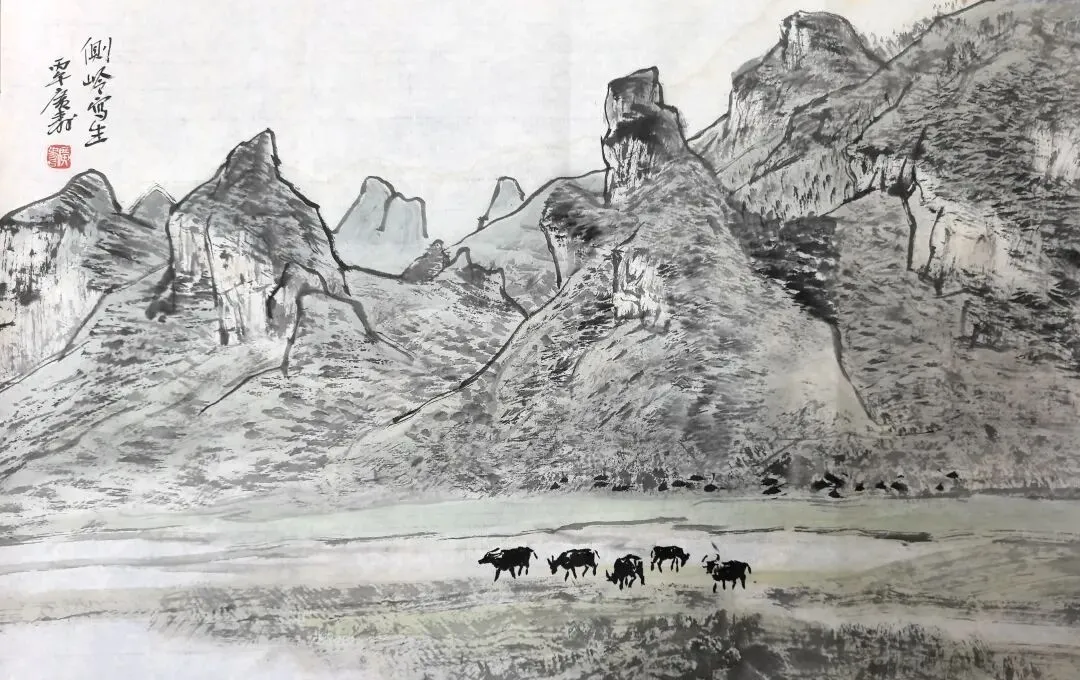 韦广寿生性喜欢写生,无论早晚还是暑寒从不辍笔。其画多为壮观厚重,笔下之南山北水莫不神形兼备。广寿之墨色相融当为一绝,尤其描写雨后山林小溪,几凝听见淅淅沥沥之音。而云雾弥漫山腰渐行渐远之态,则几沾人衣。至于村前屋后,田埂鱼塘更是信手拈来。观今之中西墨色相融于此之妙绝者,当推广寿。广寿为人宽厚,中庸行事。画亦如人,人见人喜。上至庙堂,下至巴人,多以得之为宝。