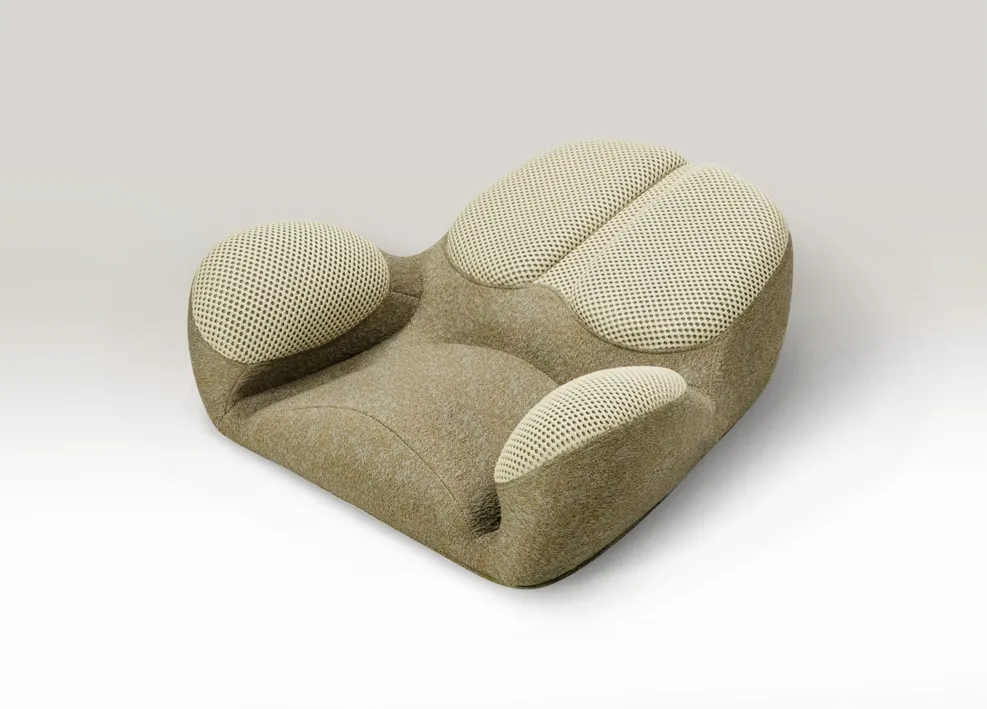 作品【「算法自然」系列沙发】探索算法美学在家具中的应用。不同于农业与工业时代的在地性与标准化特征,数字时代的参数化设计与柔性制造催生出新的形态语言。设计师将参数结构引入软体家具,使沙发体块由算法立体切分生成,呈现自由且复杂的有机形态。在保证人机工学的同时,突破传统构造与表皮逻辑,实现算法生成形态与自然意象的融合,形成面向当代的设计表达。
