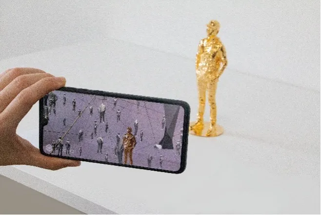 良渚玉器有「天人合一」的自然审美趋向,有「宁为玉碎」的民族气节,有「敢为人先」的开创精神,有「润泽以温」的无私品德,也有「化干戈为玉帛」的和谐观念。它凝聚了良渚先民的社群构建逻辑,呈现出对超越性力量的想象崇拜,作者将以上精神内核进行当代性的转移与叠加。铜镀金材质光芒模拟了数字时代炫目又虚幻的特质,让来自先民的凝视看见5000年前无形的权力。