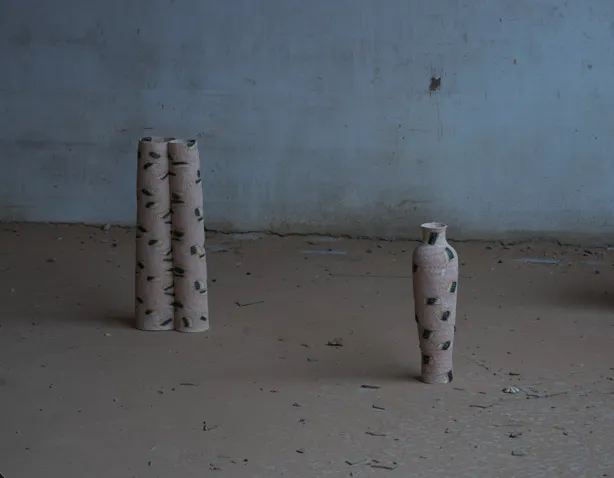 作品【双连系列】以绞胎工艺回应早期文明的结构意识。形制参考仰韶双连壶的并置关系与良渚嵌玉漆器的连续纹样,呈现关于秩序与生成的理解。绞胎通过切割、排列与重复,使纹理在材料内部自然生成,与器形同步形成。作品并非传统再现,而是在缓慢制作中回到造物源头,重新体会人如何通过基本操作建立对结构与关系的认知。