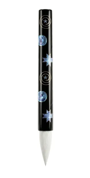 作品【良渚·曜象】以良渚文化中的典型图腾为灵感,将五千年前关于天象与宇宙的想象凝练于一支笔之上,转译了先民对星象运行与宇宙秩序的感知。笔杆以大漆为底,饰以螺钿工艺,在深黑与流光之间呈现出如夜空般的层次与光泽。将良渚文明中古老而神秘的天文意象,转化为可被手持、书写与凝视的当代器物,让书写成为与远古精神相连接的一种方式。