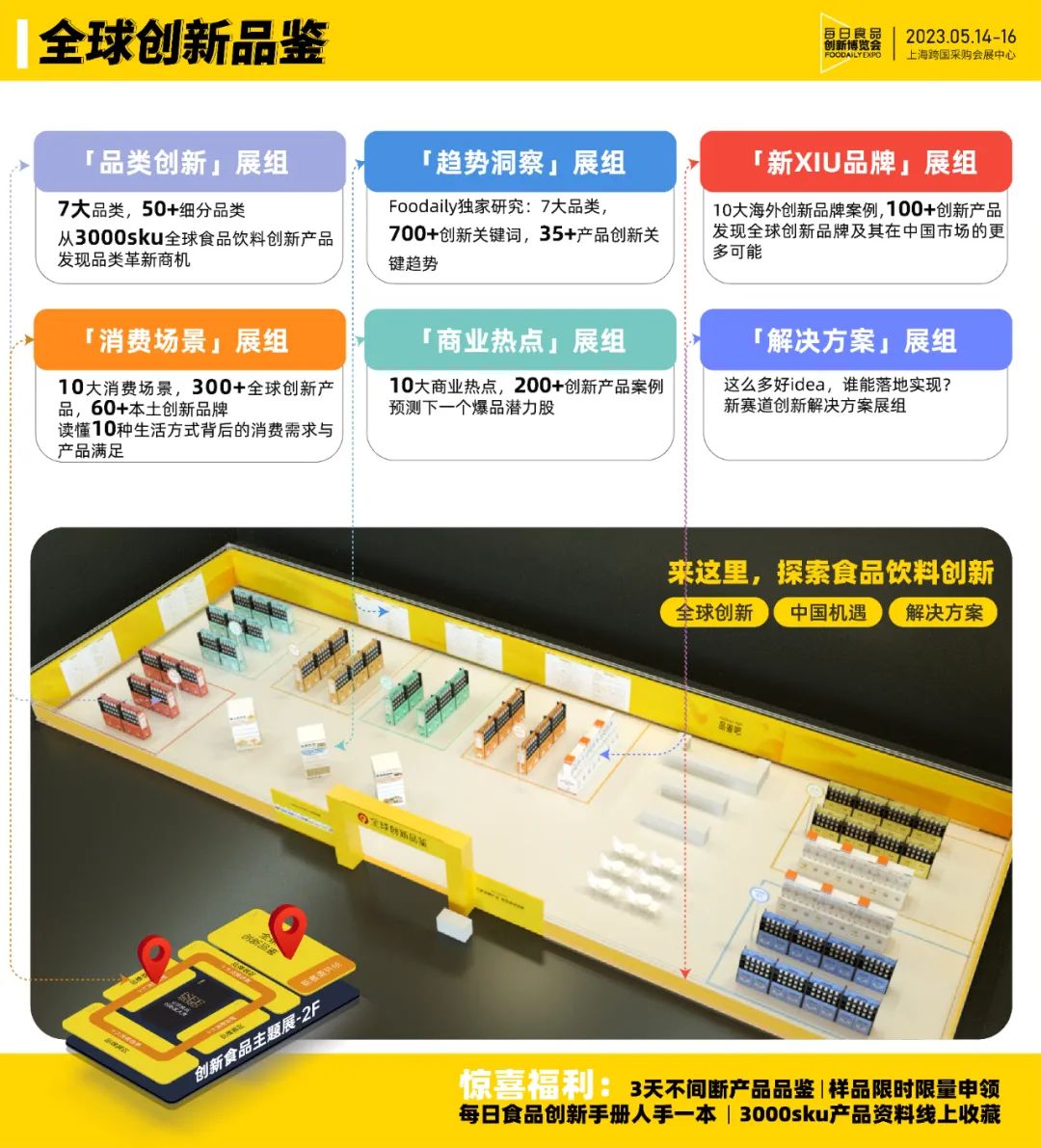全球创新品鉴展区汇聚了来自北美、欧洲、日韩等26个国家,覆盖1000+个品牌3000➕sku,现场将以七大品类展组、全球创新奖项展组、10大新XIU品牌展组、10大商业热点展组以及10大消费场景展组呈现。旨在让大家在现场体验全球创新产品和新概念,捕获新品研发创新趋势和灵感,同时与现场的赛道头部供应商碰撞出更落地的创新解决方案。