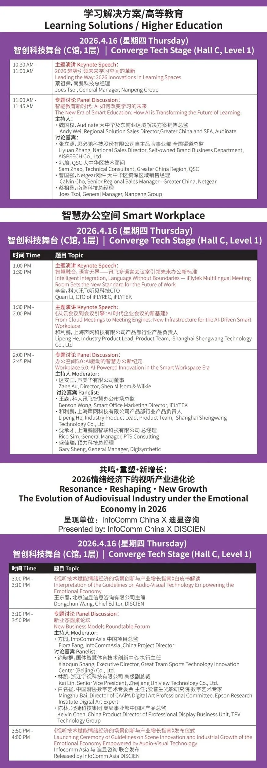 明日第二天(4月16日)的活动日程更加精彩密集。展商现场活动依旧丰富,从数字标牌、沉浸式文旅,到智慧教育、智慧办公,还有全新发布的情绪经济白皮书——全天看点满满,值得期待!