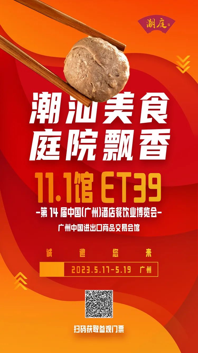 2023年5月17日,第 14 届中国(广州)酒店餐饮业博览会将在广州市海珠区广交会馆琶洲展馆 B 区盛大开展,展会为期三天(5.17-19),潮庭食品受邀参展,正在火热筹备展会中。