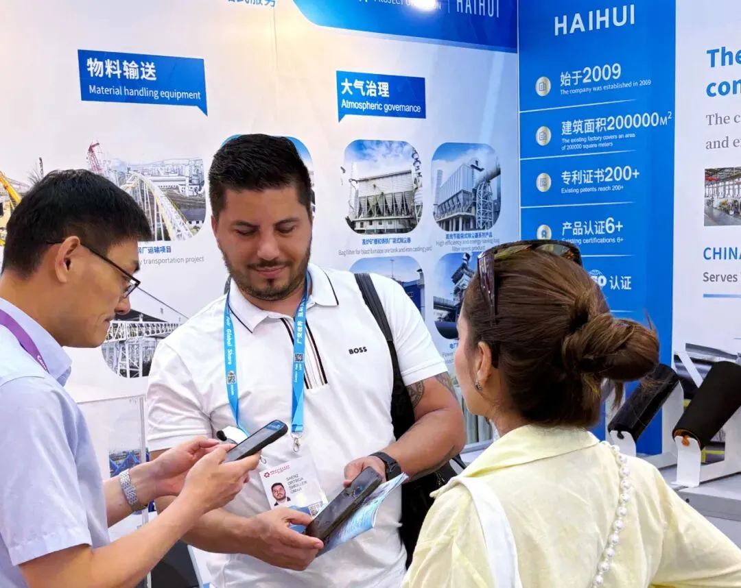 面对全球不同区域的差异化需求,参展团队结合各国行业痛点与属地环保政策,依托全球项目落地经验,重点推介智能输送系统智能化控制、高效稳定运行、全周期运维的核心优势,同步展示配套除尘设备超低排放技术与定制化解决方案。凭借过硬的技术实力与完善的海外全流程服务体系,现场收获多国客商的精准询价,首日参展成果丰硕。