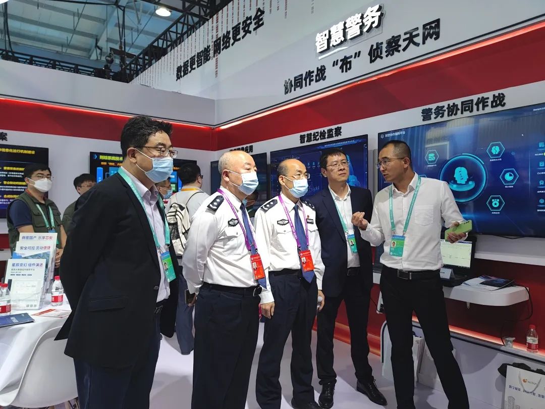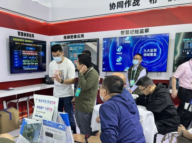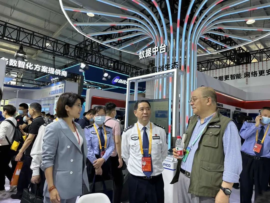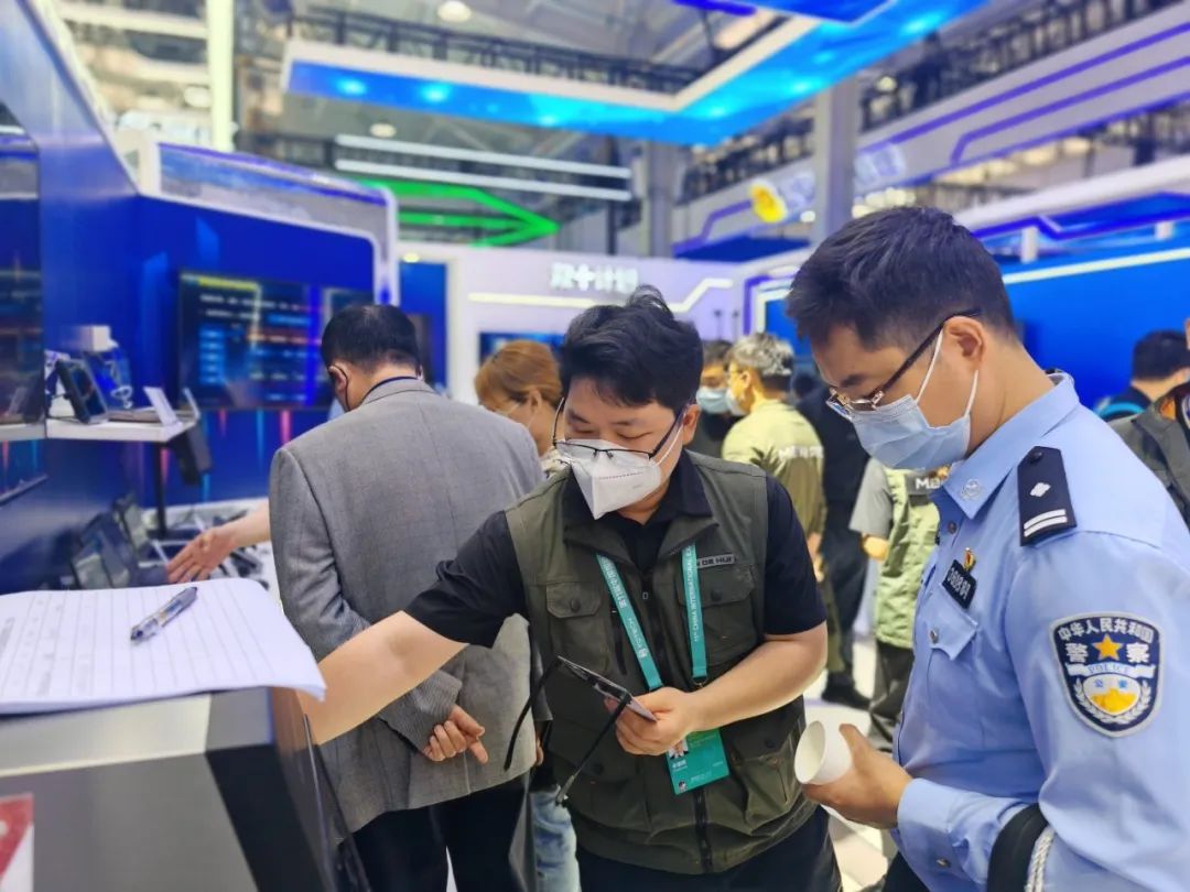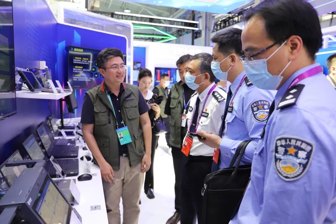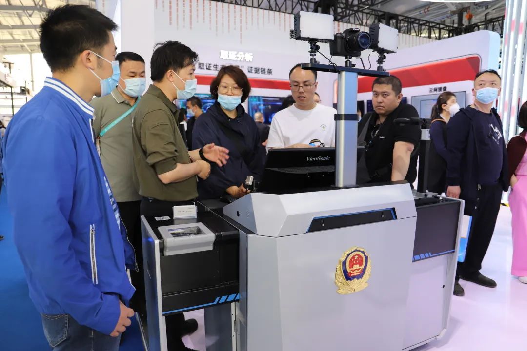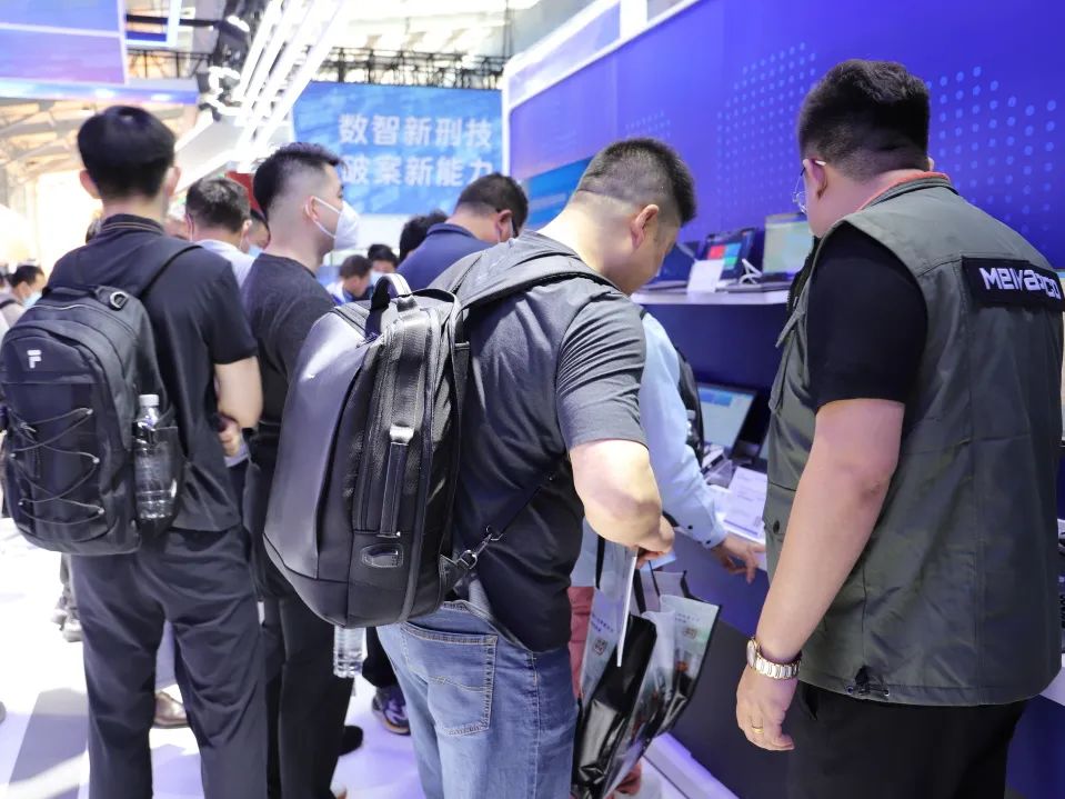 刑事技术装备展台电子数据取证产品咨询参观者络绎不绝,热切洽谈。