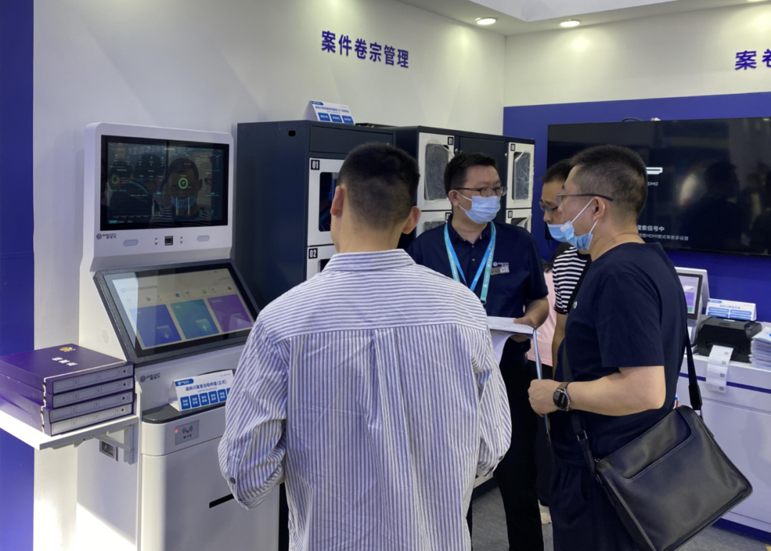 在执法办案管理中心装备展区,高新兴重点展示了执法办案管理中心的“1+7+3+N”产品体系,“1个中心”:执法办案管理中心系统,“7类应用”:场所监督管理、办案区、涉案财物、接报警等,“3大支撑”:场所视频智能运维检测、动环监控、统一认证,“N种智能辅助手段”:人脸识别、行为分析、OCR、智能审讯等。此外,现场还展示了系列化装备,包括智慧执法场所管理解决方案、案管系统、物管登记终端、案管登记终端、智能案卷副柜、一体化智慧审讯台等。