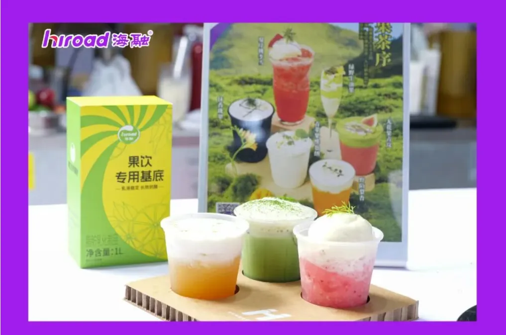 比如海融科技的果饮专用基底依托自主研发的双层乳化锚定技术,成功解决新茶饮行业长期存在的酸性环境下饮品分层、起絮难题,让水果茶、复合蔬果汁等产品在长时间存放、冷链运输过程中保持口感稳定、状态均匀,大幅延长产品保质期,同时适配现制饮品、预包装饮品等多场景需求。