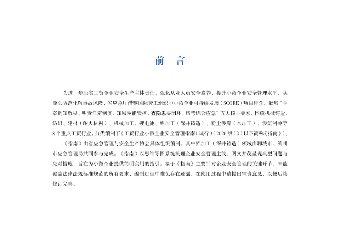 山东省应急管理厅《工贸行业小微企业安全管理指南(试行)》(2026年版)深井铸造,文末可下载