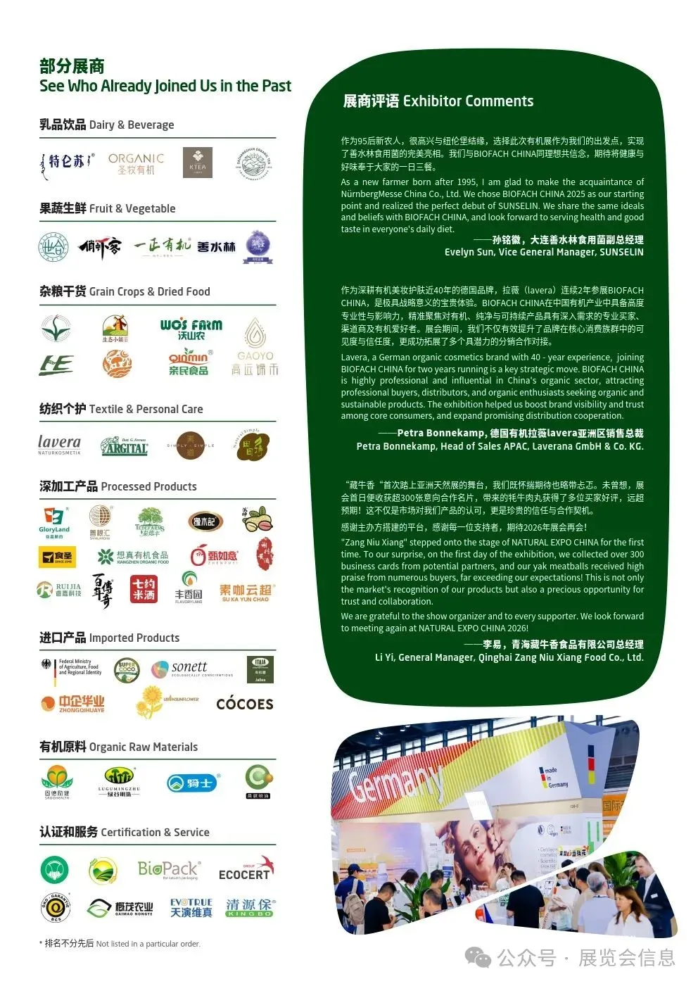 创立于2007年的BIOFACH CHINA品牌源于全球15大展览公司之一的纽伦堡国际博览集团,深耕中国市场19年,充分融合国内外资源,立足国际视野,将其打造成为亚洲屈指可数的专业化B2B国际有机贸易平台,是有机生产商们展示企业品牌、提升品牌形象的绝佳场所。