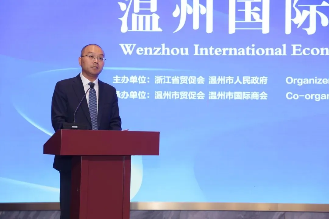 温州市人民政府副市长陈宽在致辞中聚焦温州发展特质,生动诠释温州“千年商港”的深厚历史底蕴,系统介绍温州作为开放前沿的独特区位优势与多元产业机遇,重点聚焦智能制造、新能源、时尚产业等核心领域的发展潜力与布局规划。他强调,温州正以持续优化的营商环境、不断提升的服务效能,为全球投资者搭建干事创业的优质平台,热忱欢迎各国嘉宾、企业家与温州共享发展红利、共拓合作空间、共绘互利共赢的崭新蓝图。