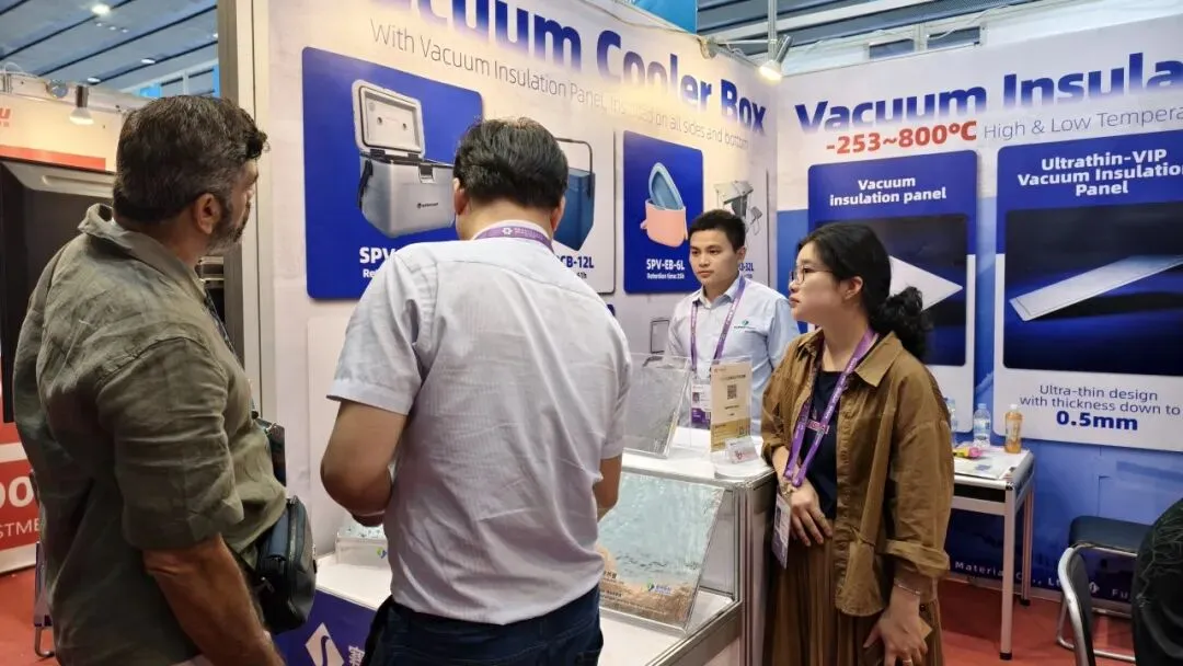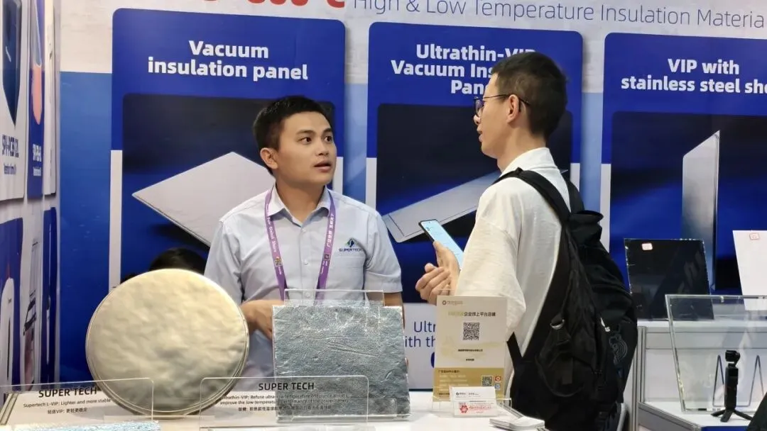 海内外采购商聚焦赛特新材®核心产品,包括真空绝热板(VIP)、真空绝热玻璃(VIG)、阻隔膜及冷链保温系列产品,围绕产品核心性能、技术参数、节能优势及多场景应用(建筑保温、家电保温、冷链运输、新能源电池保温等),与我方专业团队展开深度交流,细致咨询产品隔热效果、使用寿命、定制化方案及合作模式。