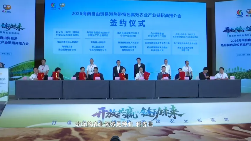 4月14日,由海南省农业农村厅主办的2026年海南自由贸易港热带特色高效农业产业链招商推介活动在海口成功举办。本次活动是2026海南自贸港全球产业招商大会重要板块,以“开放共赢 链动未来——打造热带特色高效农业新高地”为主题,吸引国内外农业龙头企业、商协会、投资机构等近300位嘉宾齐聚海口,共商合作、共谋发展。