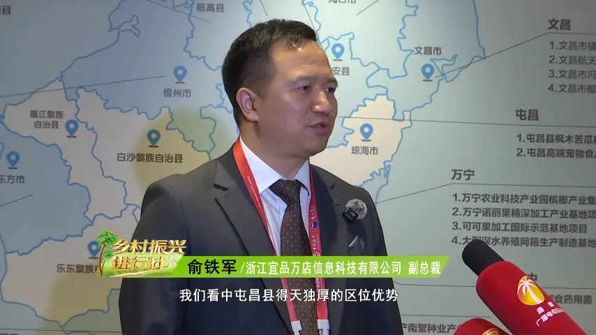浙江宜品万店信息科技有限公司 副总裁 俞铁军:我们看中屯昌县得天独厚的区位优势以及热带水果产业基础,同时海南自由贸易港的政策红利极具吸引力, 尤其是加工增值30%免关税、自用生产设备进口免关税等核心政策,为水果精深加工产业发展提供了绝佳机遇。