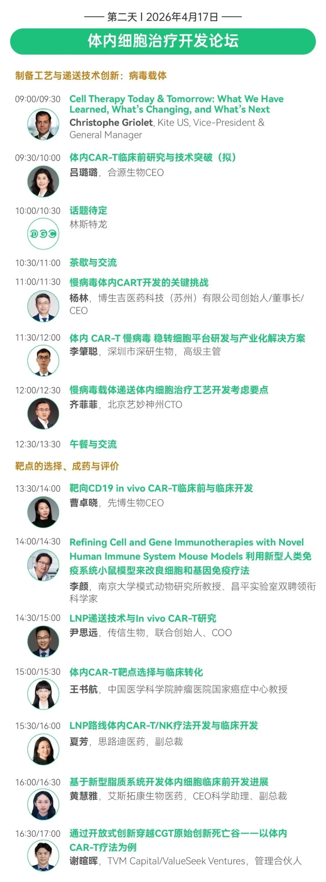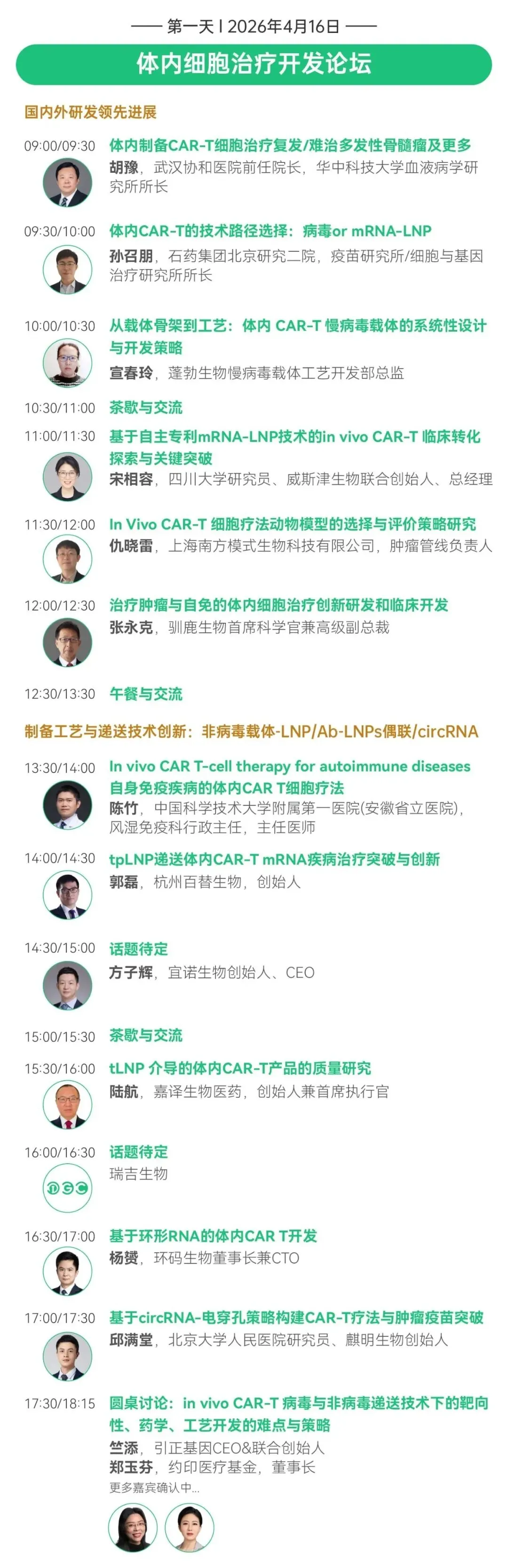值此“818号令”与“828号令”新政实施前夜,大会汇聚80+国内外顶尖科学家、监管专家与产业领袖,深度聚焦体内细胞治疗、通用型免疫细胞、干细胞与外泌体、mRNA核酸药物、基因治疗、先进治疗药品质量研究与控制法规等前沿领域。不仅直面技术攻坚与临床转化的核心挑战,更将通过高层闭门研讨,共探“双轨制”下的合规路径与商业化破局之道。