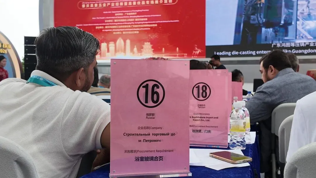 广交会还是个“检验场”。不仅产品质量要经得起国际市场的检验,高要的服务也要国际化。在推介活动现场,每个桌子上都有一块粉色号码牌,上面不仅写着采购商的企业名字,还用该采购商国家的语言标出了其采购需求,这个细节既体现了高要优品出海的决心,还体现出高要服务接轨国际的细心。