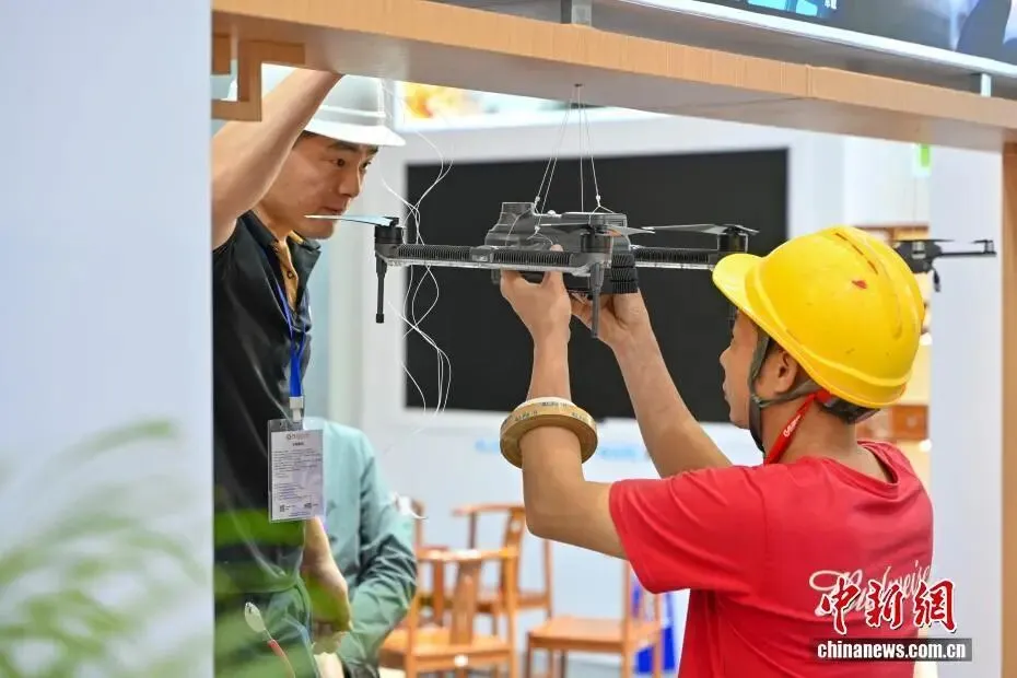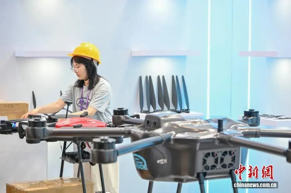 4月14日,工作人员在广交会无人机专区内布展。第139届中国进出口商品交易会(广交会)将于4月15日至5月5日在广东广州分三期举办,在第一期展览中新增设无人机(消费级)、农用无人机专区,向世界客商展示新质生产力发展成果。中新社记者 陈骥旻 摄