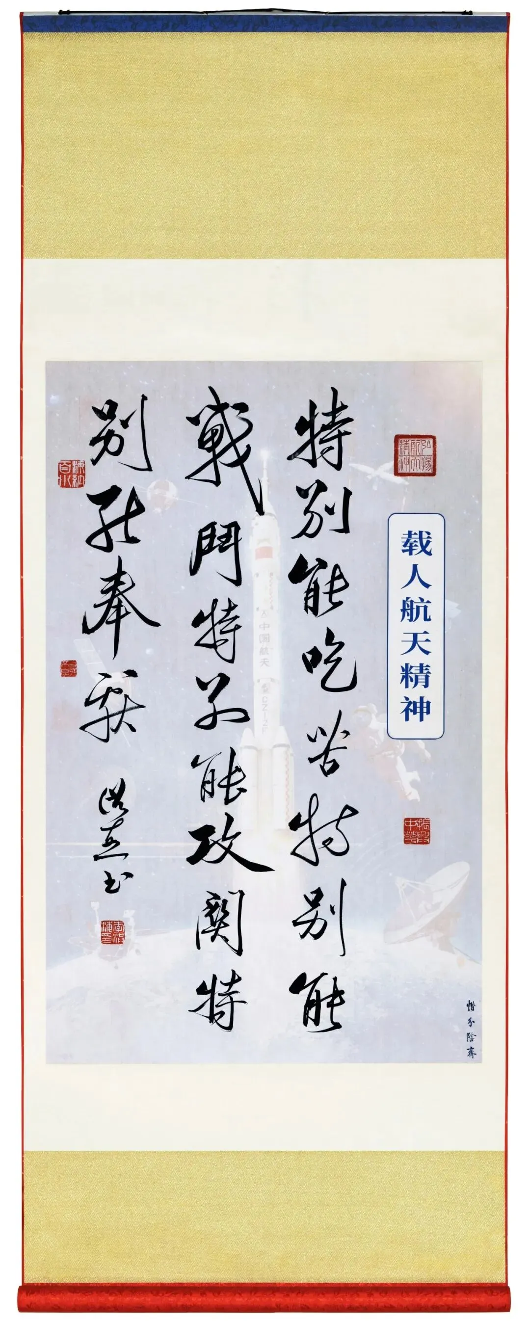 今年是中国航天事业创建七十周年。70年来中国航天事业栉风沐雨、勇毅前行,一代代航天人以深厚的家国情怀接续奋斗,在浩瀚苍穹创造中国奇迹,铸就不朽的航天丰碑。书法家李洪海以笔墨为媒,融翰逸神飞的书法艺术与波澜壮阔的航天梦想,串联起航天梦的文化血脉,以航天精神铸造航天文化精品。让航天强国的宏大篇章转释为可感、可思、可赏的件件艺术作品愿我们共同在笔墨间感悟航天人的初心使命,弘扬伟大航天精神,为筑就航天强国梦贡献智慧和力量。感谢您支持,谢谢您的关注和分享!
