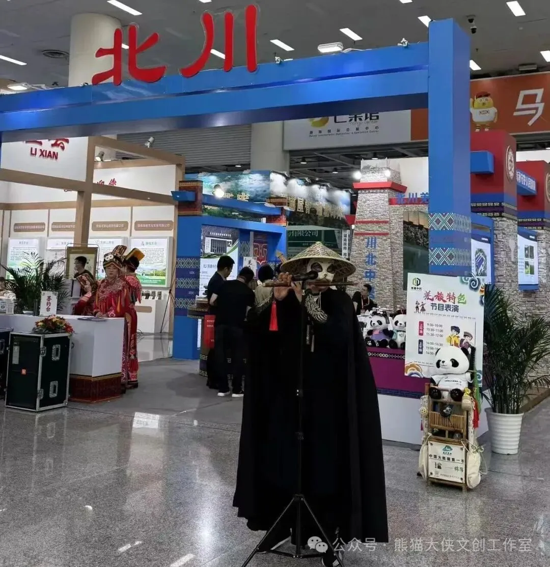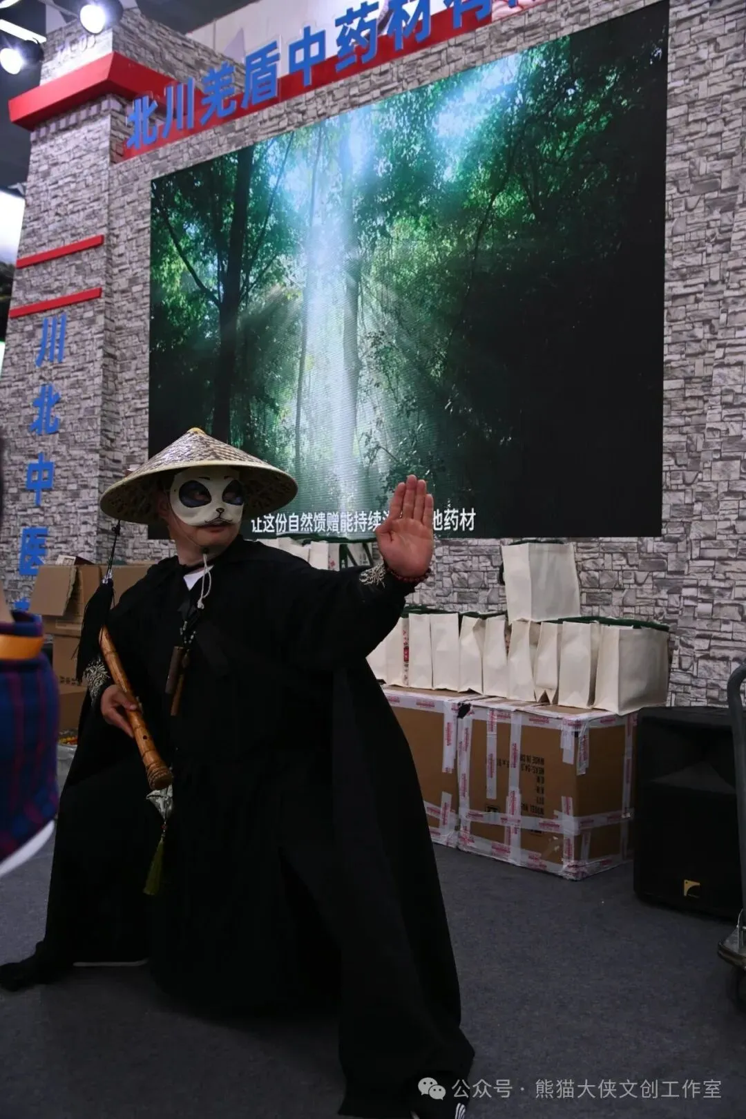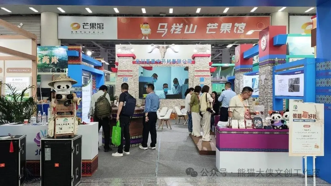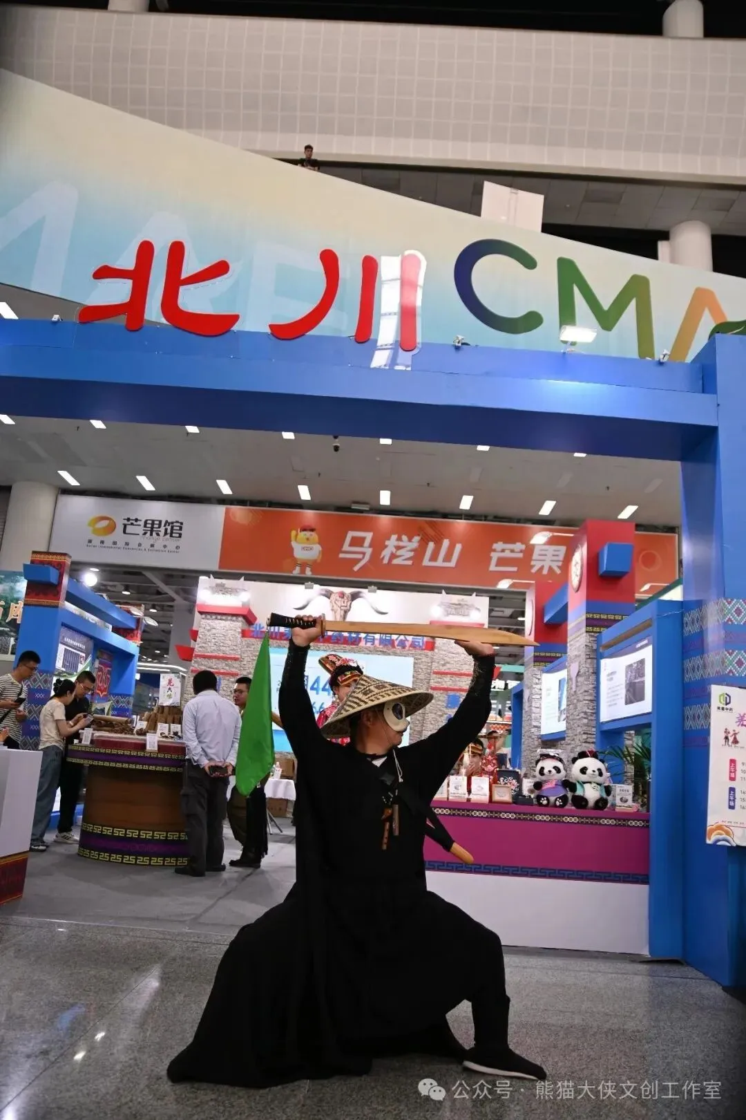 展会期间,绵阳北川野生大熊猫和自然保护工作者、熊猫村CEO-熊猫大侠(清风张伟)携熊猫文创及熊猫大侠IP进行了打卡,创意传播自然保护和推介熊猫村林下经济。