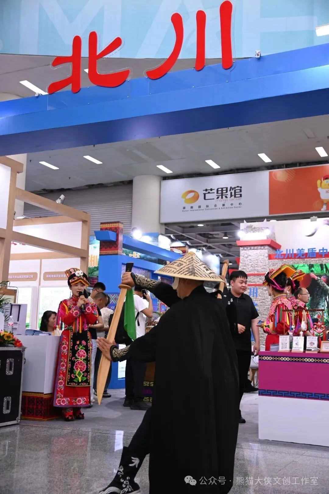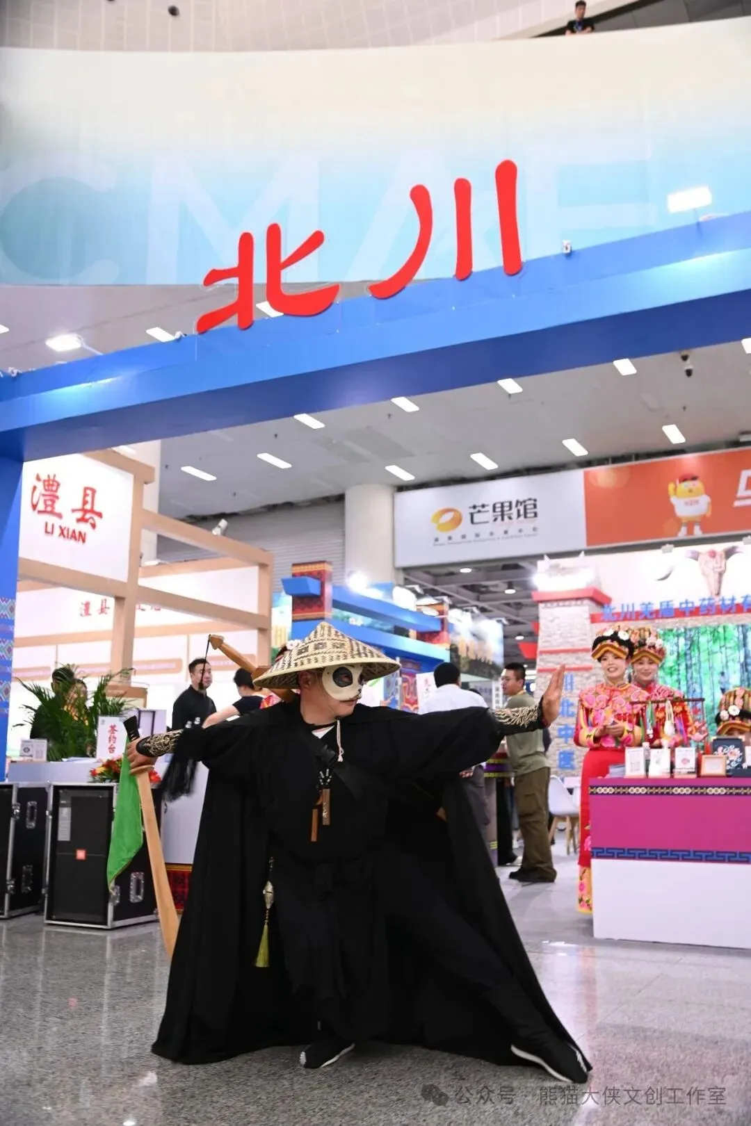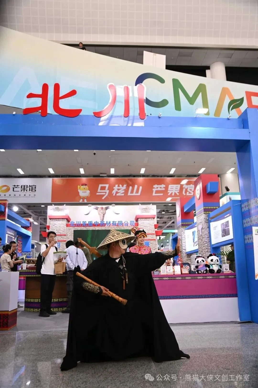 展会期间,绵阳北川野生大熊猫和自然保护工作者、熊猫村CEO-熊猫大侠(清风张伟)携熊猫文创及熊猫大侠IP进行了打卡,创意传播自然保护和推介熊猫村林下经济。
