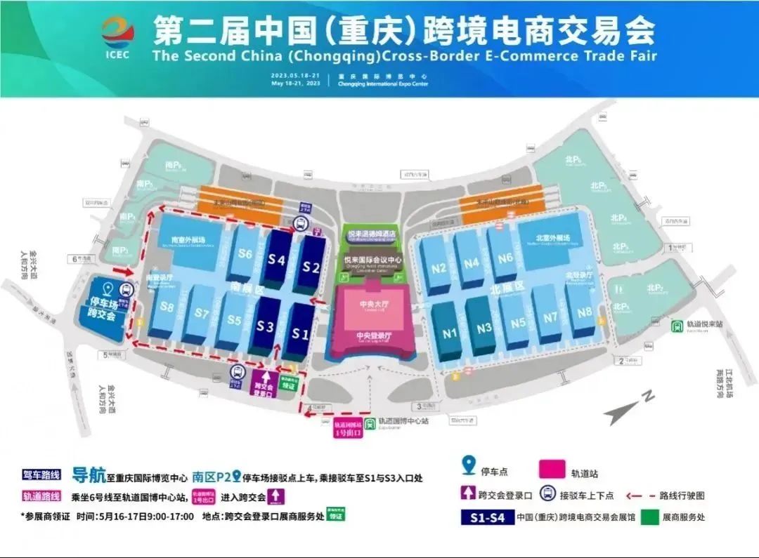 驾车路线:导航定位重庆国际博览中心南区p2停车场,接驳点上车,乘接驳车至S1-S3入口处