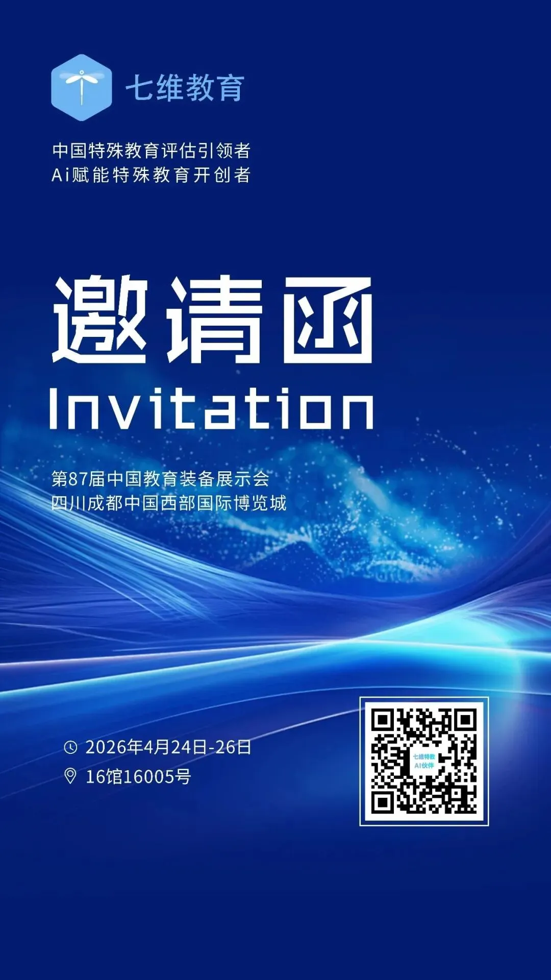 4月24-26日,成都·中国西部国际博览城,16号馆16005号展位,七维教育将集中展示AI赋能的特教评估与干预全流程解决方案,从课标评估到IEP生成的智能化闭环系统,覆盖培智、随班就读、送教上门全场景的评估工具矩阵,以及17款专业评估与康复训练系统和区域级特殊教育数字化管理平台。