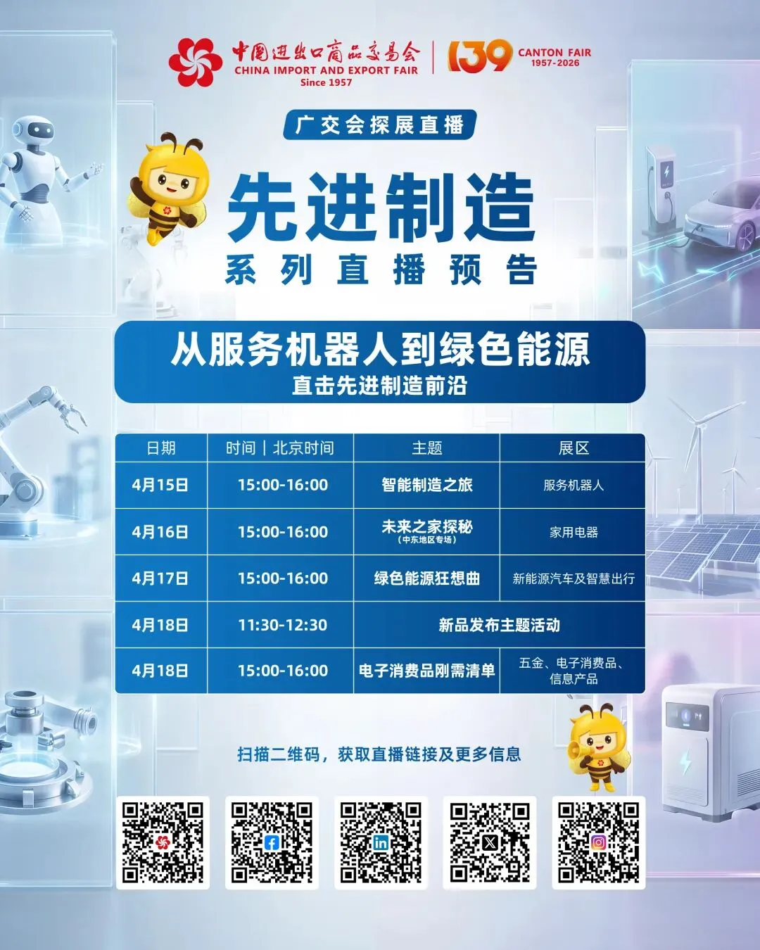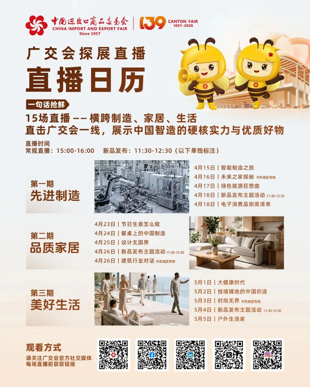 【直播预告】第139届广交会探展直播日历及第1期先进制造系列直播预告
