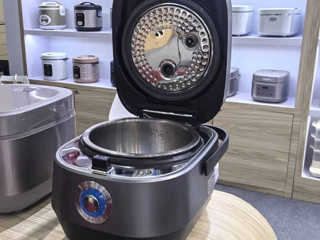 在湛江家电展区,华强电器集团展位前人头攒动,今年新推出的钛内胆电饭锅成为了焦点。