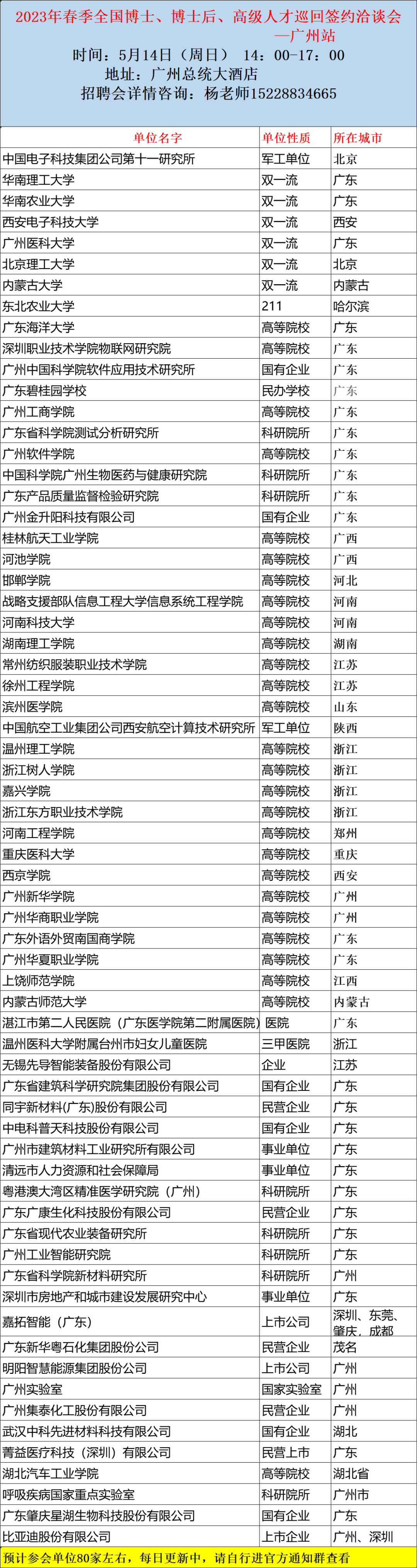 此次招聘会规格大型,来自全国各地的知名高校、科研所和企事业单位80家左右。可以一次性了解到各地区单位的引才政策、接收标准、岗位、薪资等, 跟各单位人事处长,学科负责人面对面交流 。