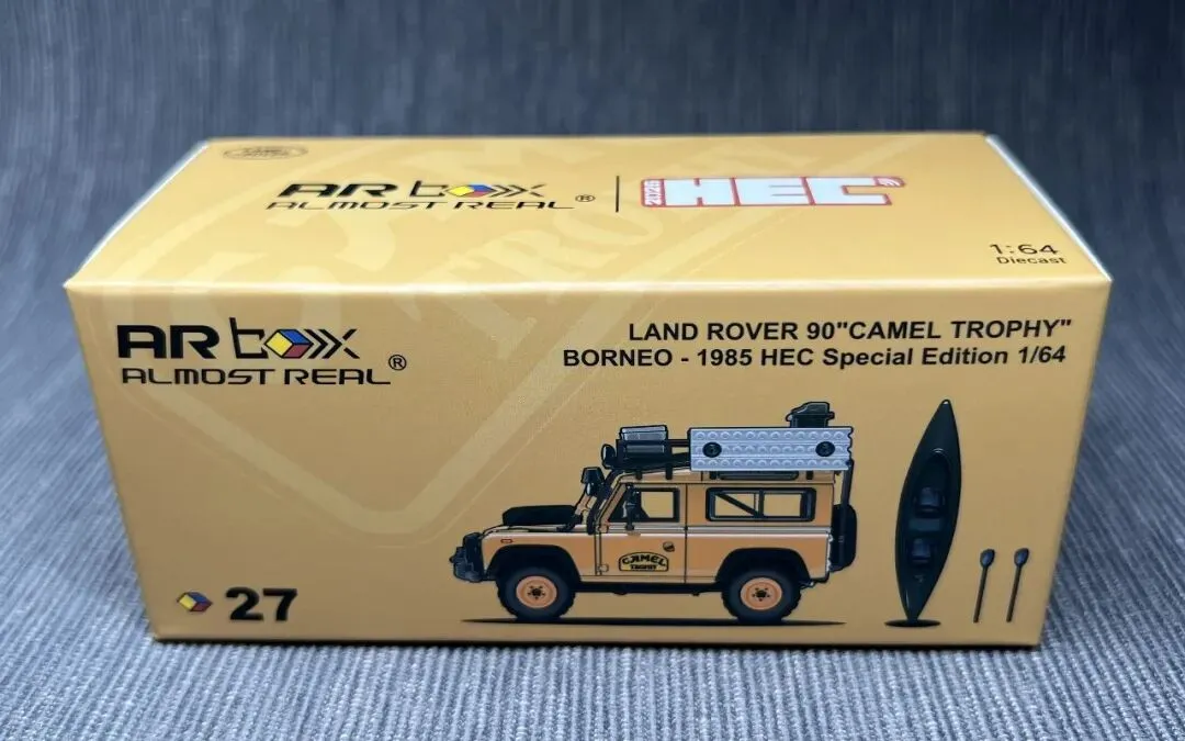 当日套票价格是299元,随票礼品是由Almost Real推出的路虎90骆驼杯1985年婆罗洲赛车2026HEC套票专属版(车顶带有小船),限量1000。小车在路虎90赛车的基础上,车顶额外增加了皮划艇配件。小车底盘架构真实还原了带整体桥。车头防撞梁车灯护网采用高精度蚀刻片工艺,配合细腻的车头灯珠,视觉逼真度拉满。车头备胎,车顶行李架及四周挂满脱困板、行李箱、油桶、铁锹、涉水喉与车尾爬梯,全方位再现满载穿越形态。标志性的“沙黄”(Sandglow)车漆,复刻专属拉花与车门标识,致敬纯粹拉力精神。