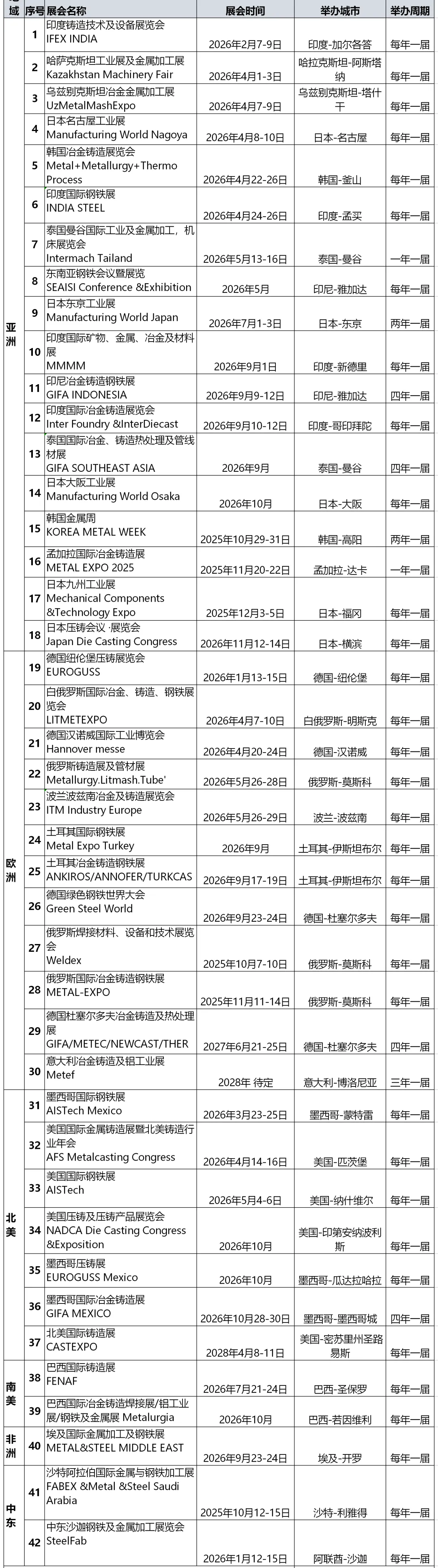 2026年全球冶金铸造展会计划表