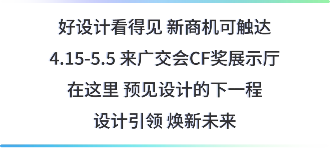 位于D区广交会堂三楼的CF奖展示厅焕新亮相,展示兼具设计和商业价值的精品,让好设计与全球商机在此交汇。