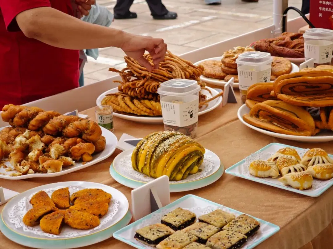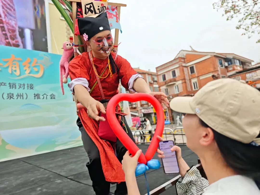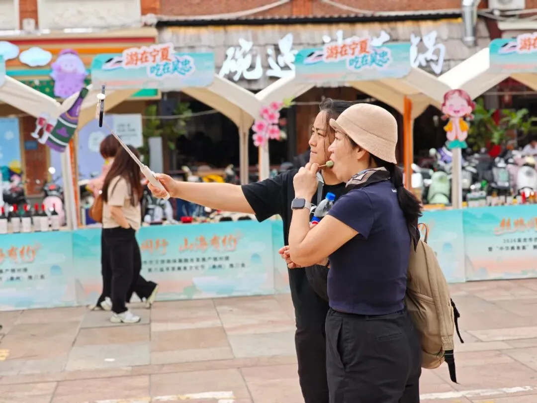 活动现场,泉州西街非遗剧院广场人头攒动。手工刺绣、八宝茶、枸杞、葡萄酒等优质农特产品与文创非遗集中亮相,地道塞上风味与泉州古城烟火气交融碰撞,吸引众多市民游客驻足打卡、咨询洽谈。美食品鉴区人气最旺,早茶牛肉面、烩小吃、馓子油香等特色美食备受青睐。“今天最惊艳的就是吴忠早茶,牛肉面汤汁浓郁、肉质鲜美,在南方很难吃到这么地道的西北风味。”泉州美食博主“小小麒”品尝后连连称赞。