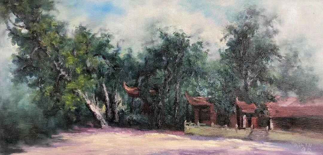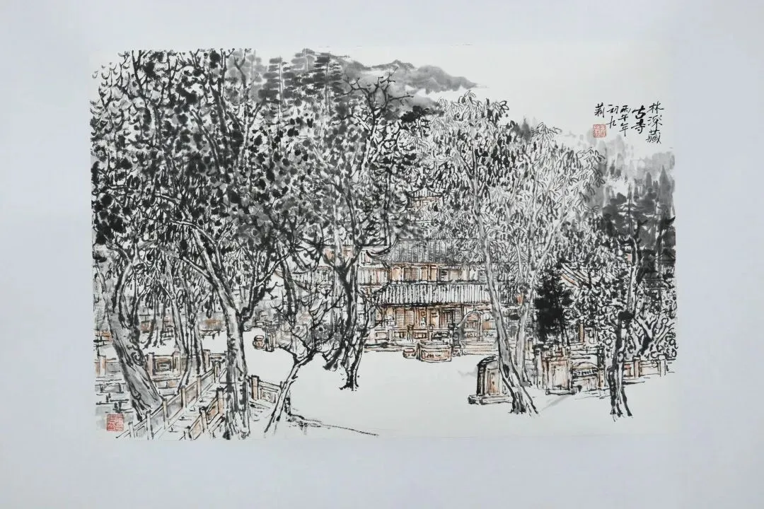 谭嘉《林深藏观》40X60cm
