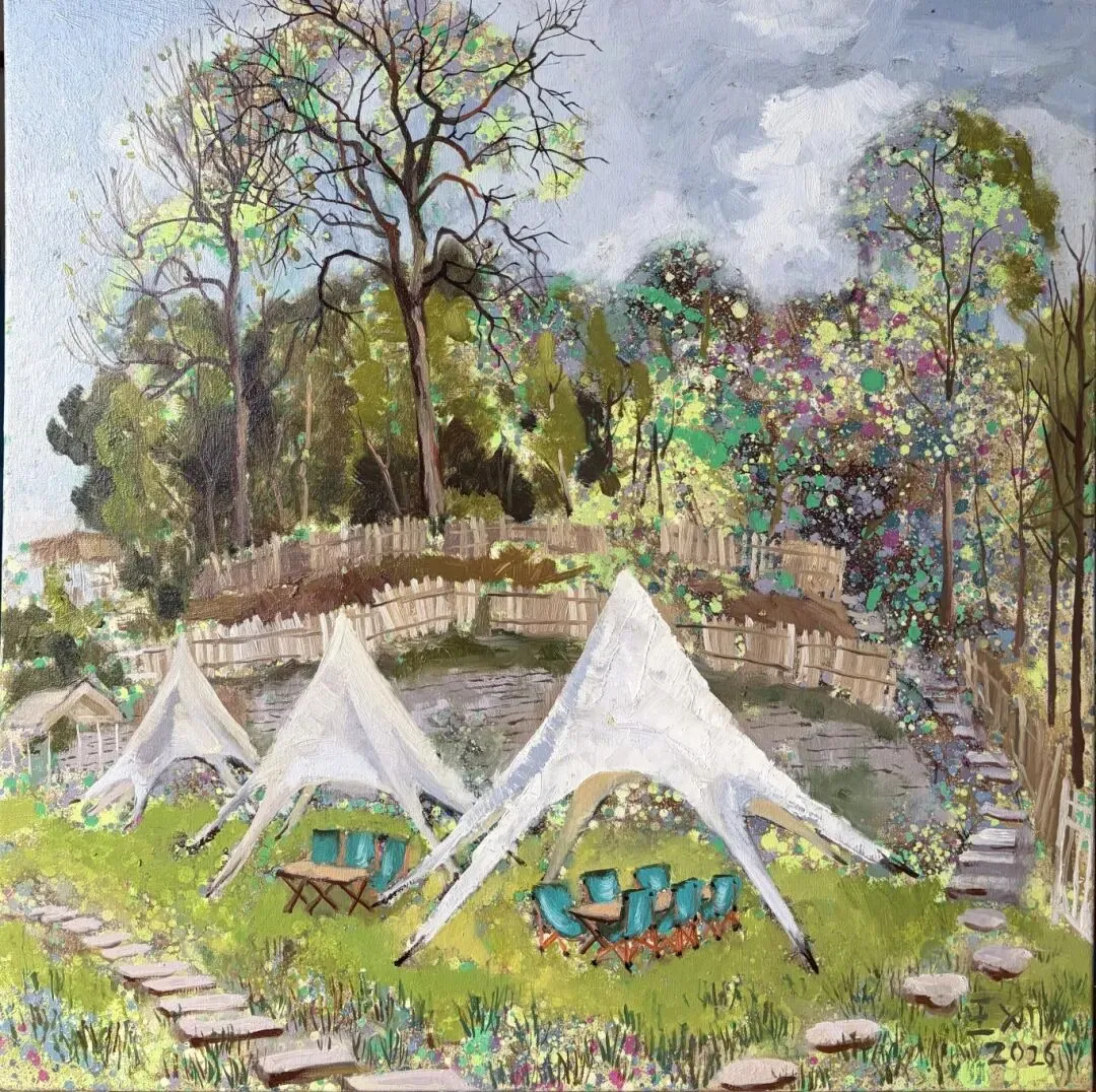 王小敏《玻璃江营地》 70x70cm